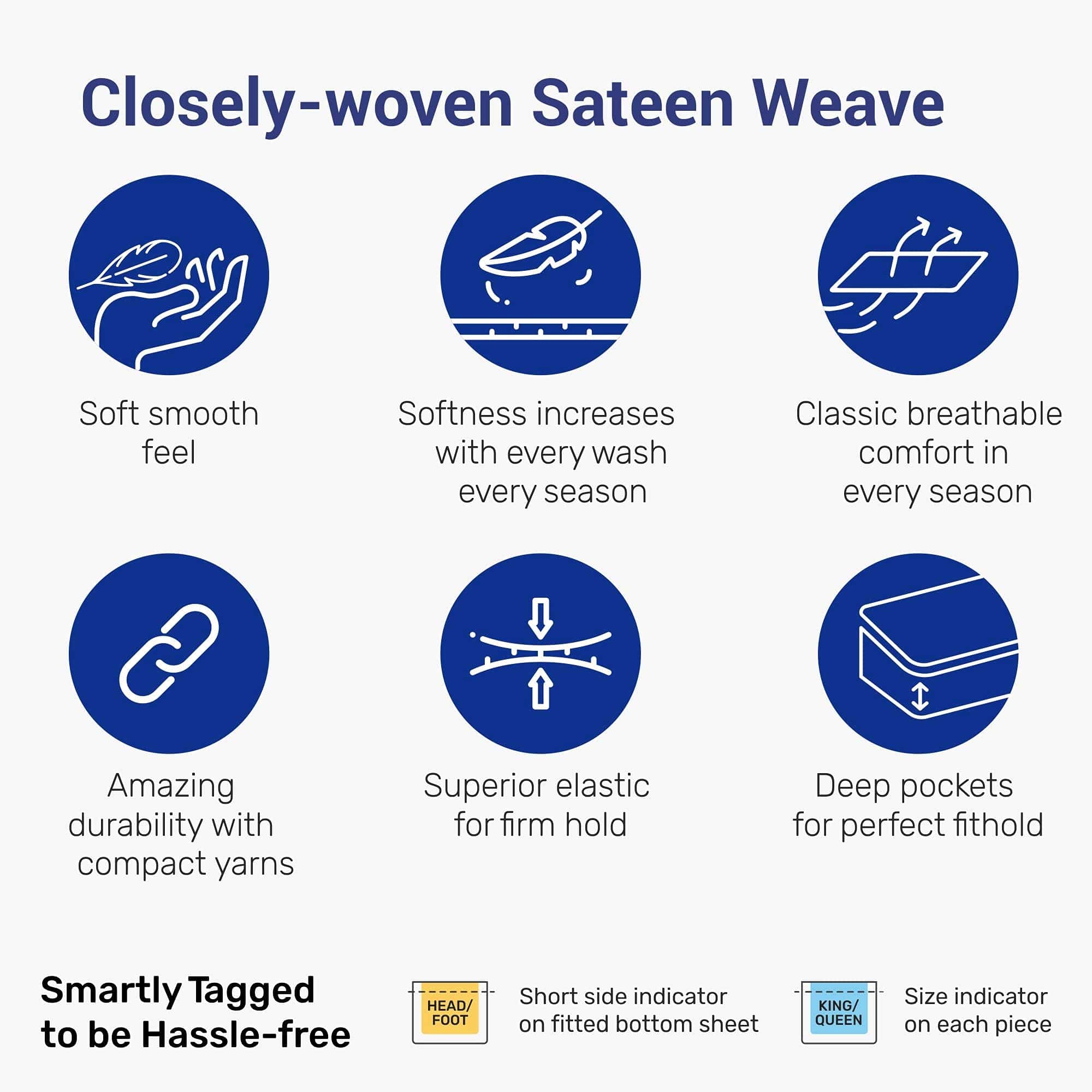 1. Ganador del premio Best Bedding 2023 de Good Housekeeping: Despierte renovado en todas las estaciones con nuestras sábanas de 100 por ciento de algodón de satén de 400 hilos certificadas que son suaves y frescas, brindándole un sueño confortable durante todo el año. Como se mencionó en un artículo del Wall Street Journal de 2023, nuestras sábanas de lujo fueron referidas como «tan suaves como sábanas 3 veces el precio» – ¡un gran valor sin duda!
