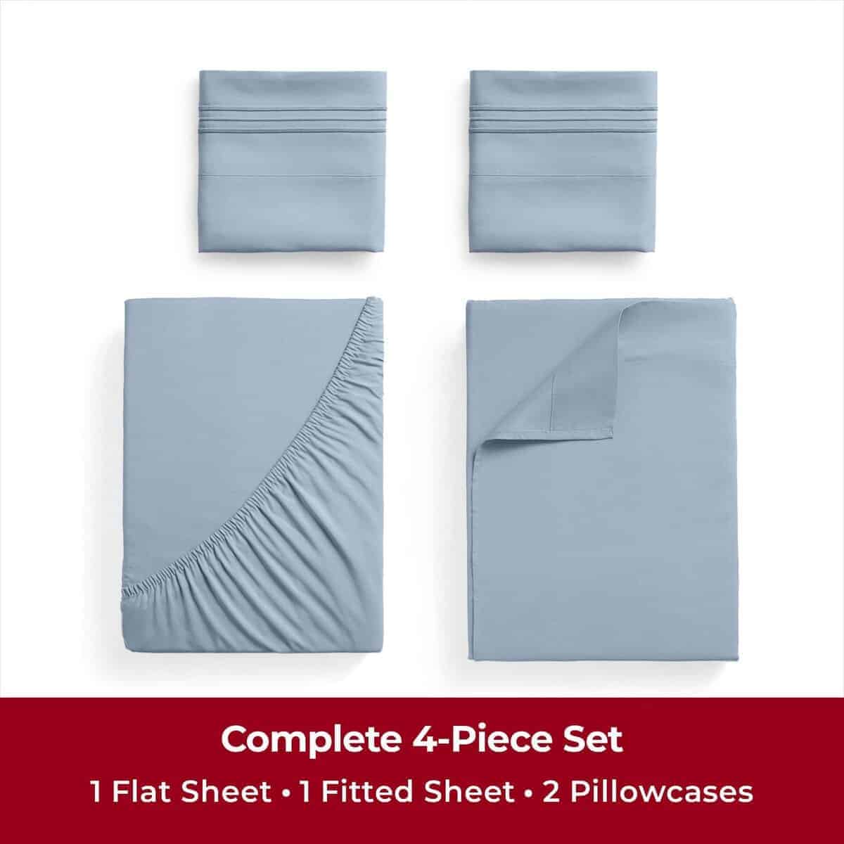Este juego de sábanas de 4 piezas incluye una sábana ajustable de 39″x75″x16″, una sábana plana de 66″x96″, y dos fundas de almohada de 20″x30″, todo fabricado con microfibra de doble cepillado para obtener una sensación ultra suave contra su piel. Las sábanas son resistentes a las manchas, rasgaduras y desgaste por lavados frecuentes, lo que las hace ideales para hogares ocupados con niños, mascotas y la vida cotidiana.