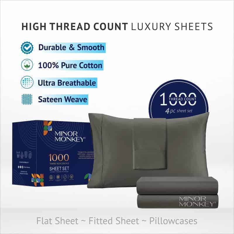 3. Experimenta el Lujo del Algodón – Estas sábanas de algodón están hechas de un 100% de algodón egipcio, renombrado por su excepcional suavidad y durabilidad. Las fibras de fibra larga del algodón egipcio crean hilos más fuertes y finos, dando como resultado estas sábanas de algodón egipcio de 1000 hilos que son resistentes al apelotonamiento y conservan su calidad con el tiempo.
