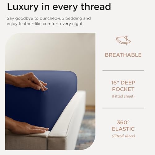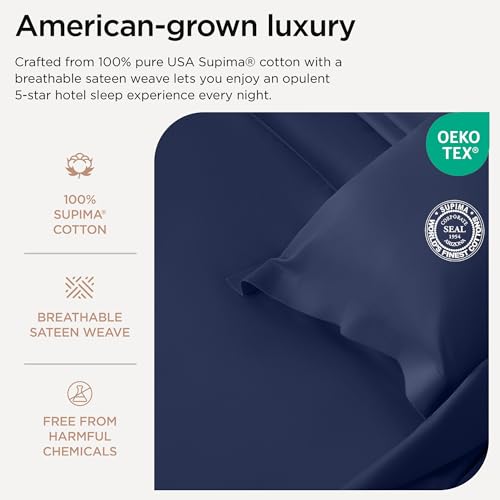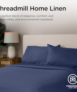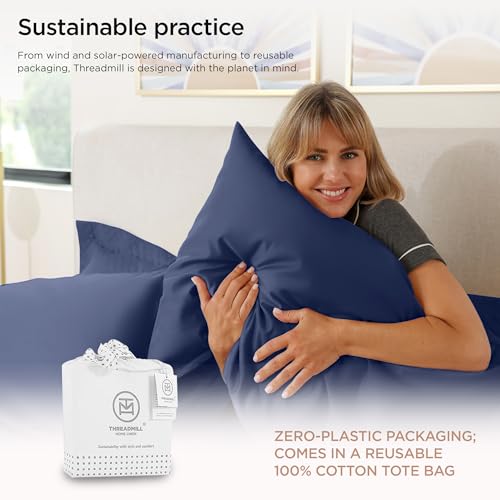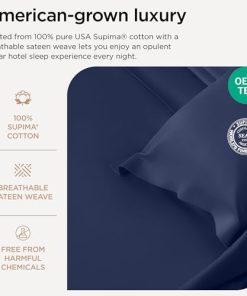 Threadmill Juego de sábanas para cama individual | Sábanas de algodón Supima para colchón individual | Juego de sábanas de satén sólido para cama individual con bolsillo profundo de 16” | Juego de sábanas de enfriamiento suave y transpirable de 3 piezas | Azul Folkstone