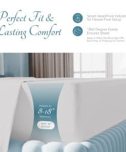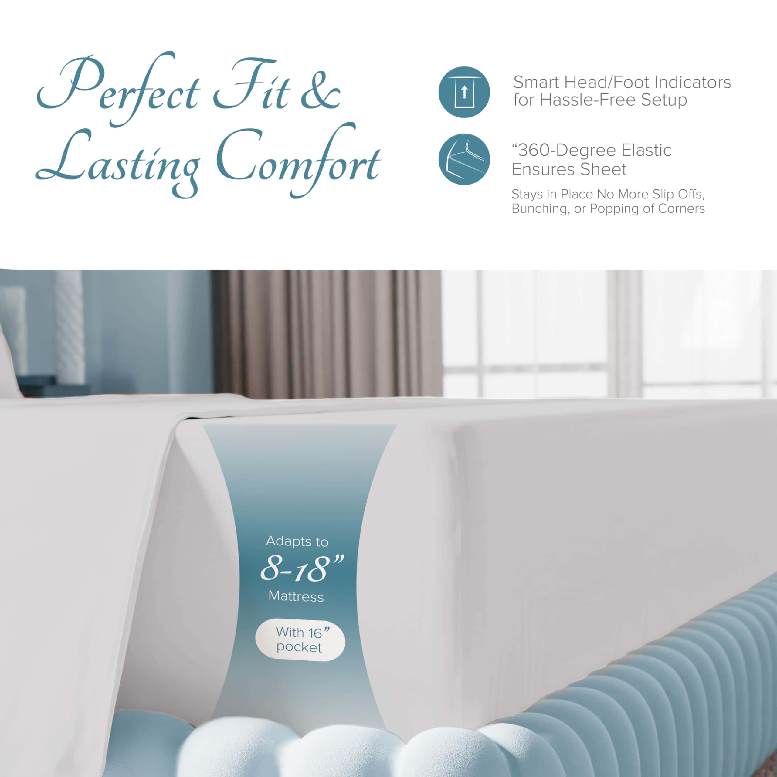 2. UN AJUSTE PERFECTO: Este set de tamaño individual XL cuenta con 3 piezas: 1 Sábana plana: 66″ Wx 96″ L, 1 Sábana ajustable 39″ W x 80″ L + 16″ con elástico de alta calidad y bolsillos extra profundos de 16″ para adaptarse a colchones de 9″ a 16″, y 1 Funda de almohada estándar 21″ x 32″. No importa el tamaño o estilo que pidas, nos comprometemos a garantizar que ames tus sábanas nuevas.