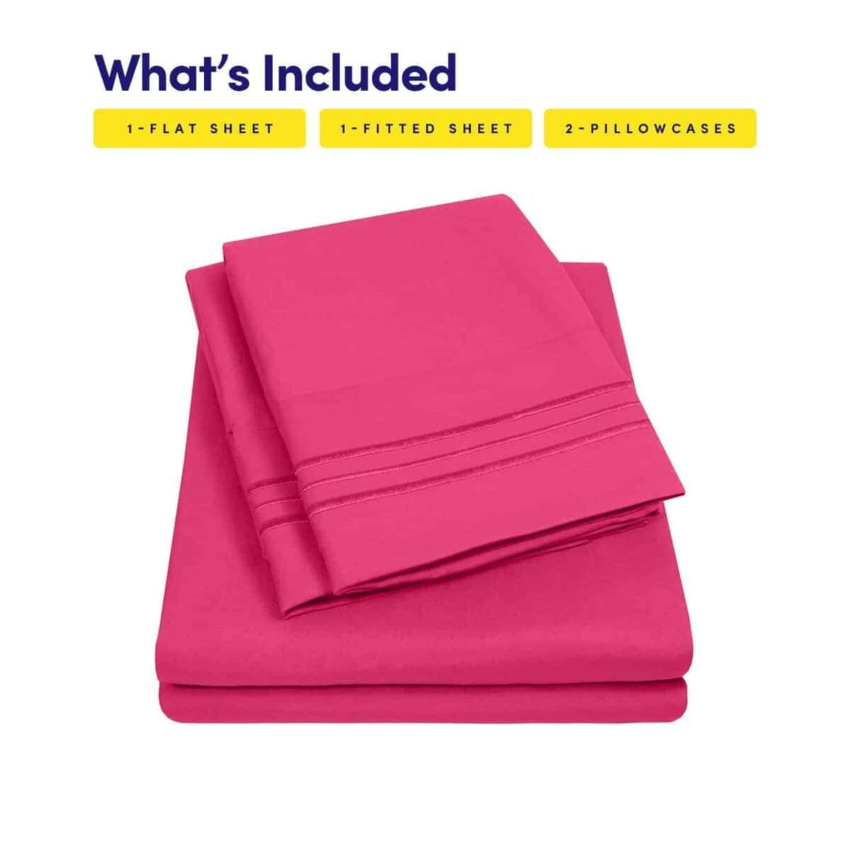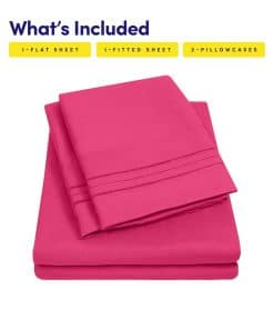 Twin: 1 Sábana plana (66″x96″), 1 Sábana ajustada (39″x75″), 1 Funda de almohada estándar (20″x30″)