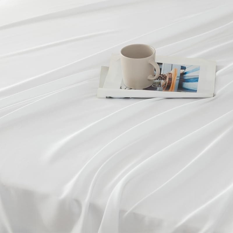 3. TRANSPIRABLE Y REGULADOR DE TEMPERATURA: Mantente fresco en verano y cálido en invierno con nuestras sábanas hechas de 100% viscosa derivada del bambú. La transpirabilidad natural de esta tela elimina la humedad, manteniéndote seco y cómodo para un sueño reparador sin importar la estación.