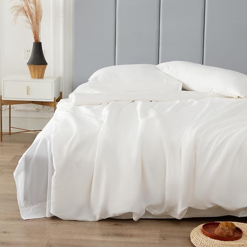 4. FÁCIL CUIDADO Y DURADERO: Estas sábanas de viscosa derivada del bambú son lavables a máquina con secado a baja temperatura. Resistentes a las arrugas, decoloración y encogimiento, asegurando durabilidad y belleza duraderas para tu conjunto de ropa de cama. Di adiós al tedioso planchado y hola al lujo sin esfuerzo.