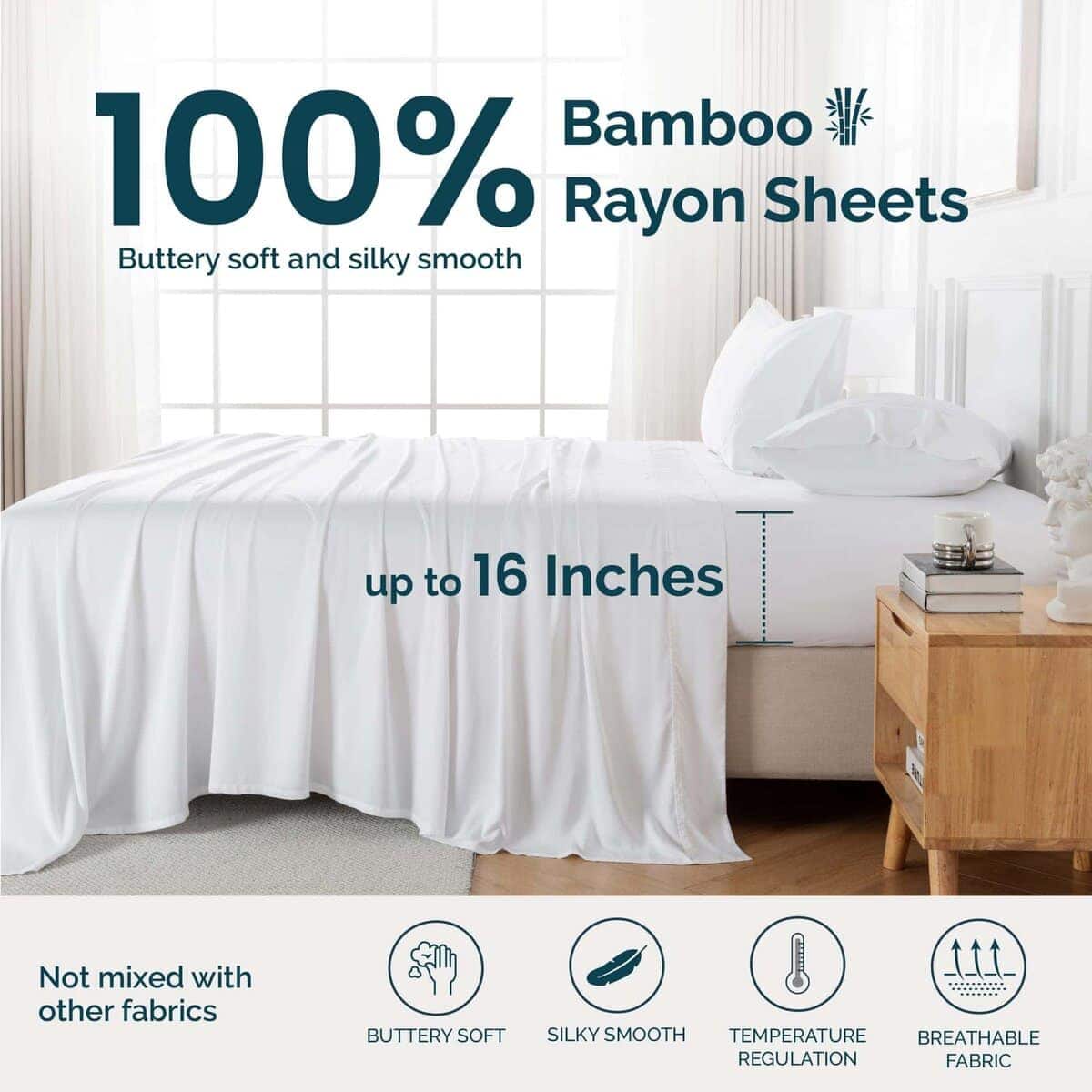 Las sábanas para cama tamaño Queen de GOKOTTA son la opción perfecta para garantizar una noche de sueño cómoda y tranquila. Fabricadas con 100% rayón derivado del bambú, estas sábanas son suaves al tacto y transpirables, manteniendo la frescura durante toda la noche. La característica destacada de este juego de sábanas son las correas elásticas en las esquinas que garantizan un ajuste seguro y sin deslizamientos. El bolsillo profundo de 16 pulgadas garantiza que las sábanas se ajusten a la mayoría de los colchones, mientras que el elástico resistente facilita el proceso de hacer la cama. ¡Haz de tu dormitorio un oasis de comodidad con estas sábanas GOKOTTA de alta calidad!