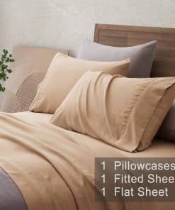 El juego de sábanas para cama twin de COMFLIVE es la elección perfecta para aquellos que buscan un sueño fresco y confortable. Certificadas por OEKO-TEX Standard 100, estas sábanas le ofrecerán una experiencia de sueño transpirable y fresca. Hechas de una mezcla premium de poliéster y fibra de rayón de bambú, las sábanas son suaves y ligeros al tacto, garantizando un confort excepcional durante toda la noche. Su diseño de hilo acolchado aporta una suavidad extra que te envolverá en un lujo incomparable. Con un bolsillo profundo de 16″, estas sábanas para cama twin se ajustan perfectamente a tu colchón y nunca se deslizarán, brindándote una comodidad sin igual. Además, son lavables a máquina, lo que las hace fáciles de mantener y duraderas. No pierdas la oportunidad de experimentar la frescura y suavidad de estas sábanas para cama twin de COMFLIVE y disfruta de un sueño reparador y refrescante cada noche.