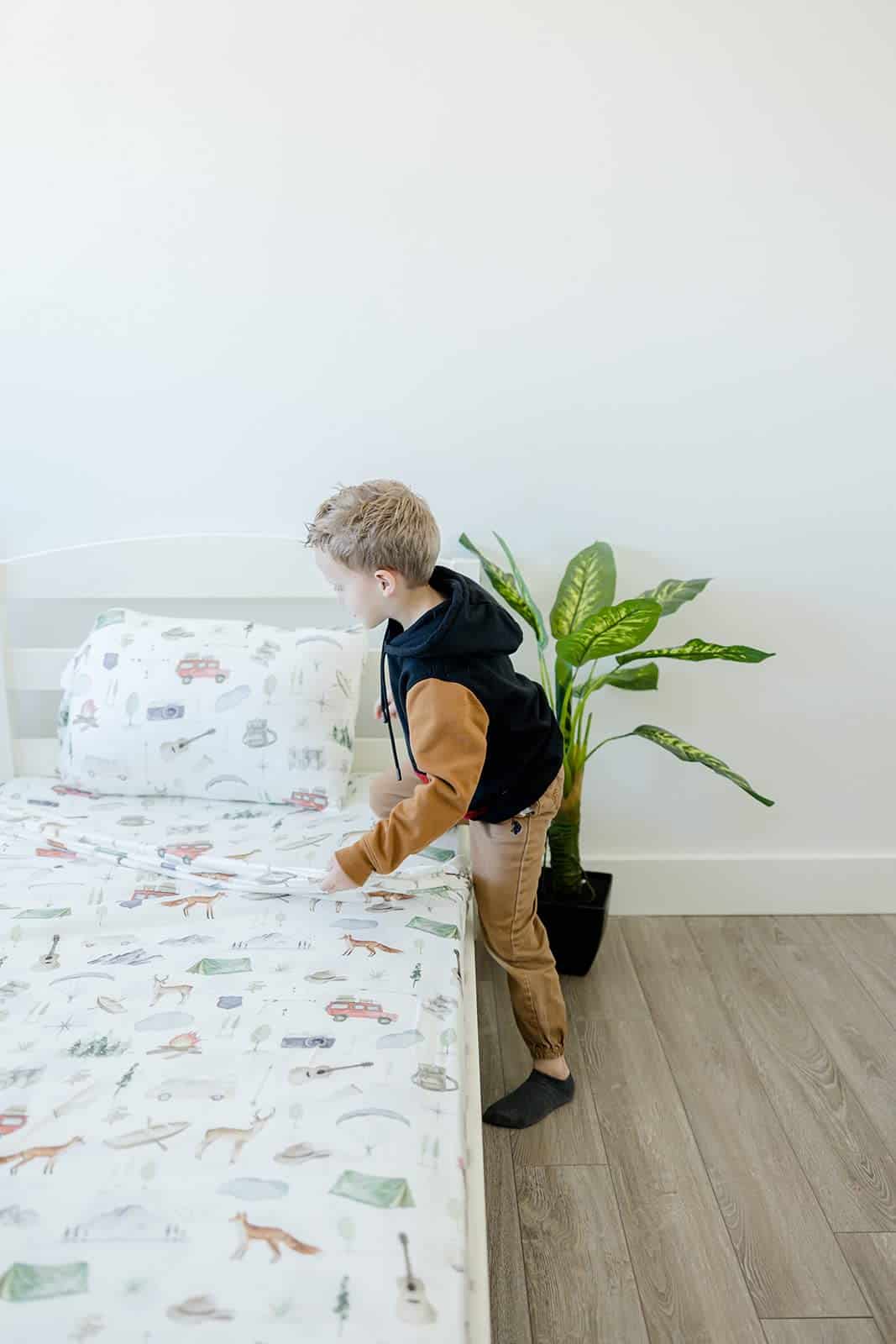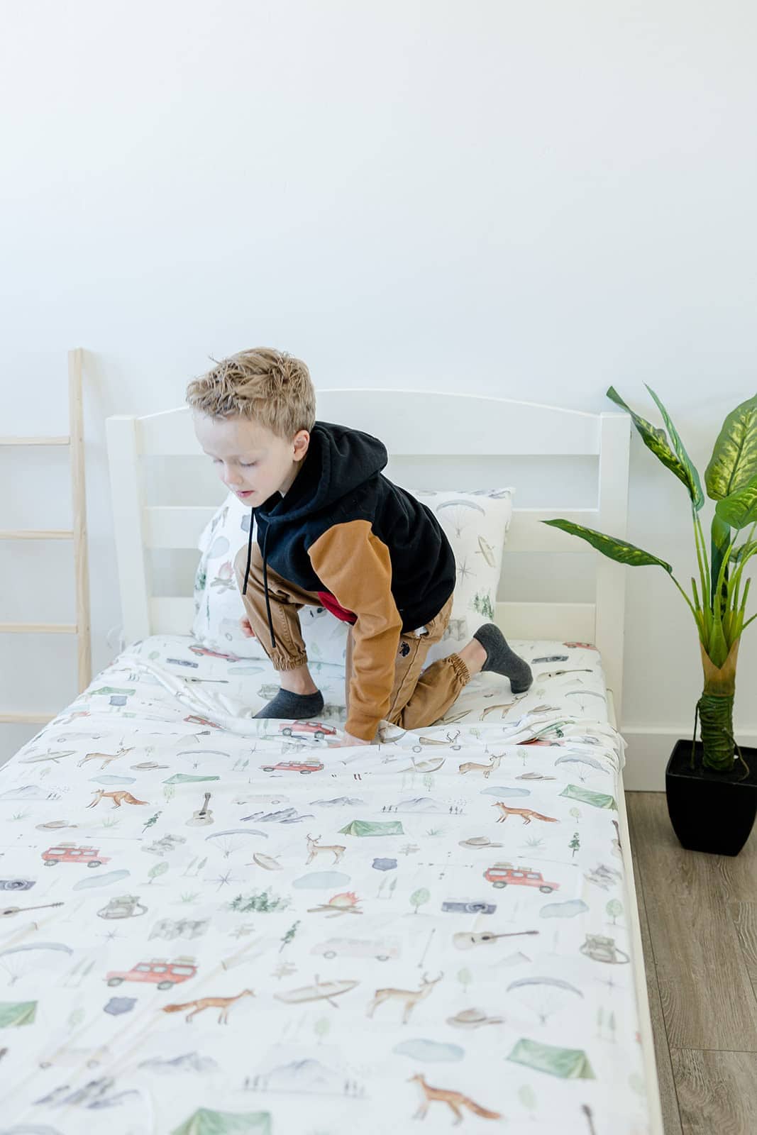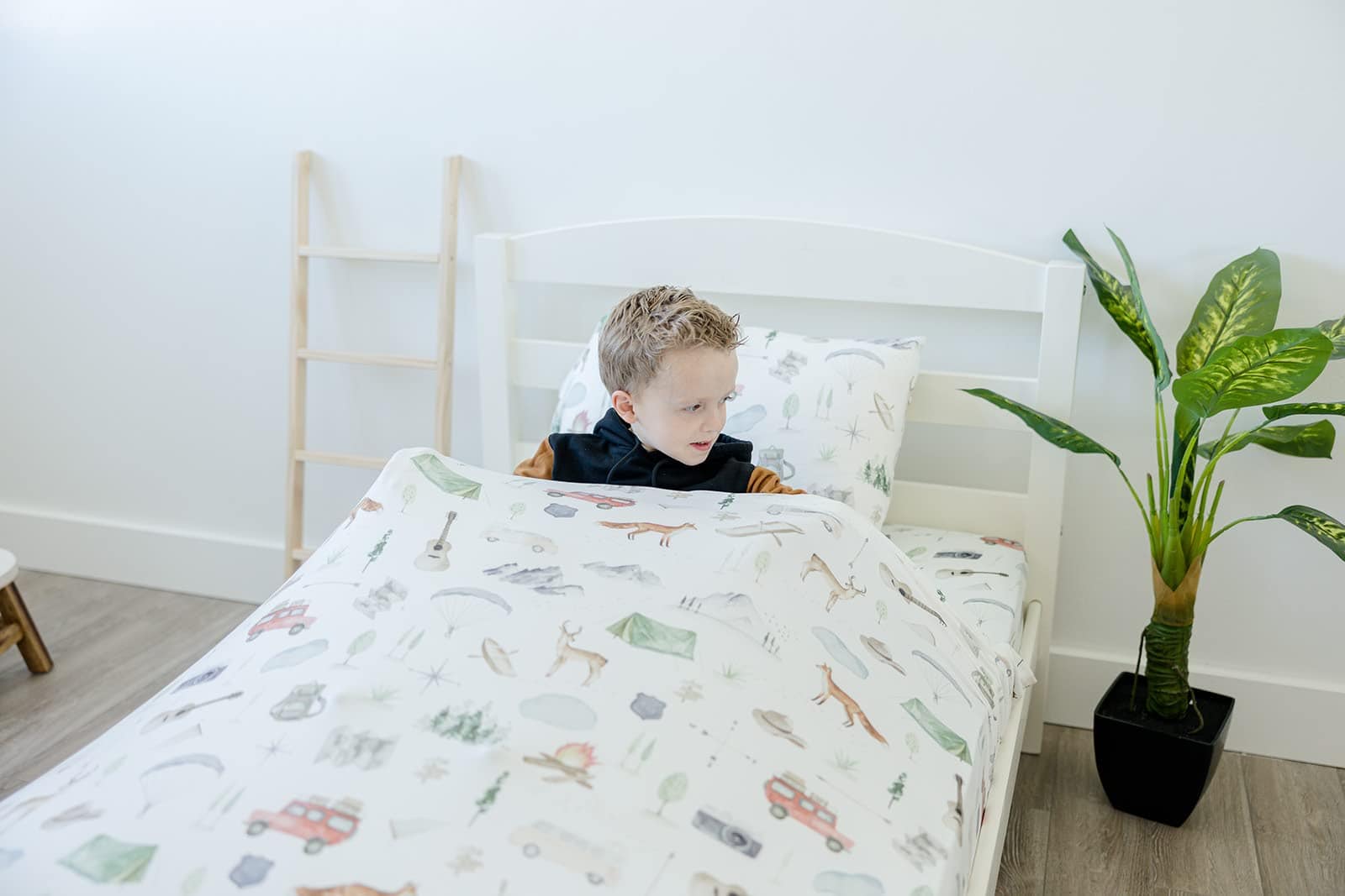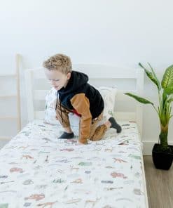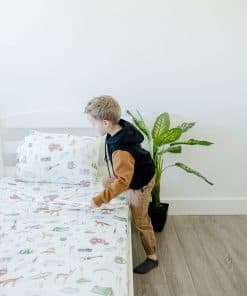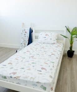 Actualiza la habitación de tu hijo con el lujoso confort del juego de sábanas para gemelos Pobi Baby. Hechas de nuestra tela ALWAYSOFT exclusiva, una mezcla de 96% algodón peinado y 4% spandex, estas sábanas ofrecen una suavidad inigualable y un toque suave. El juego incluye una sábana ajustable con una banda elástica gruesa para un ajuste ceñido en colchones gemelos, una sábana plana y una funda de almohada. Certificadas por OEKO-TEX STANDARD 100, las sábanas son seguras y libres de sustancias dañinas. Duraderas y resistentes a la decoloración, mantienen sus colores vibrantes incluso después de varios lavados. Diseñadas por madres para madres, brindan comodidad y estilo al entorno de sueño de tu hijo.