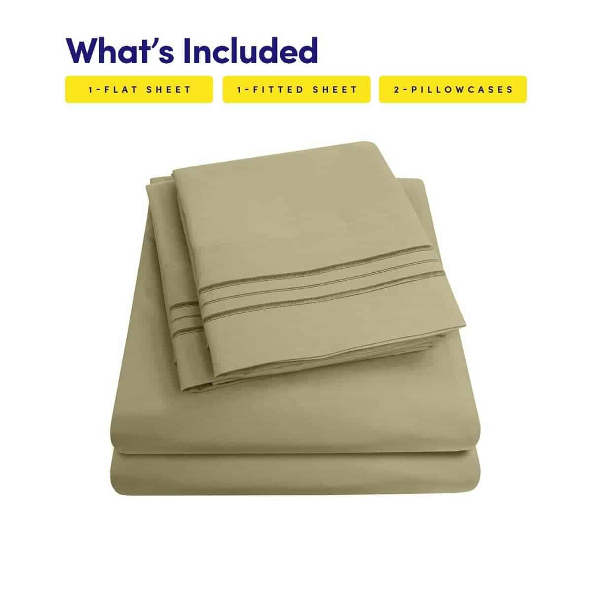 Sweet Home Collection ¿Por qué elegirnos? En Sweet Home Collection, nos esforzamos por crear productos utilizando los textiles más finos posibles a precios razonables. Encontramos técnicas que incluyen un mejor cosido, un tejido más resistente y materiales más asequibles. Calidad: Nuestra Colección Supreme 1500 es un fiel reflejo de nuestro compromiso con la calidad y la retroalimentación de nuestros clientes. Nuestro objetivo es crear clientes recurrentes por muchos años. La microfibra está abriendo el camino hacia un futuro de ropa de cama fina utilizando la última tecnología. Utilizada en todas las industrias y ganando popularidad, la microfibra sigue siendo cada vez más fuerte y confiable cada año. Precio: Compare nuestro precio con otros productos similares. ¡Con solo $25, no solo ofrecemos la mejor calidad, sino también el mejor precio! Ser accesibles es uno de nuestros valores fundamentales. Compre con nosotros: Eche un vistazo a toda nuestra línea de ropa de cama Sweet Home Collection para restaurar su dormitorio. Ofrecemos sus juegos de sábanas esenciales, faldas para camas, edredones, edredones, protectores de muebles y mucho más. No dude en contactarnos para que podamos ayudarlo. Cómo nos comparamos: Aquí están nuestras medidas para la ropa de cama. Queen: 1 Sábana Plana (92″» x 102″») 1 Sábana Ajustable (60″» x 80″») y 2 Fundas de Almohada Std (20″» x 30″»). King: 1 Sábana Plana (102″»x105″») 1 Sábana Ajustable (78″»x80″») y 2 Fundas de Almohada Std (20″»x40″»). Cal King: 1 Sábana Plana (108″»x102″») 1 Sábana Ajustable (72″»x84″») y 2 Fundas de Almohada Std (20″»x40″). Full: 1 Sábana Plana (81″»x96″») 1 Sábana Ajustable (54″»x75″») y 2 Fundas de Almohada Std (20″»x30″»). ¿Qué incluye el paquete? El Full, Queen, King y Cal King vienen con 1 sábana ajustable, 1 sábana plana y 2 fundas de almohada. El Twin viene con 1 sábana ajustable, 1 sábana plana y 1 funda de almohada. Cuidado fácil: Siéntase libre de lavar en frío y secar en secadora sin tener que planchar después porque nuestra ropa de cama es resistente a las arrugas.