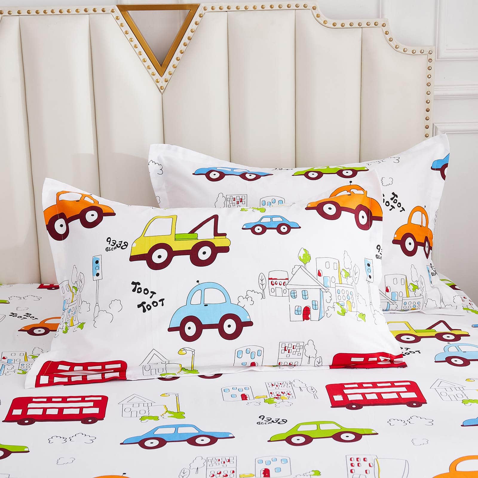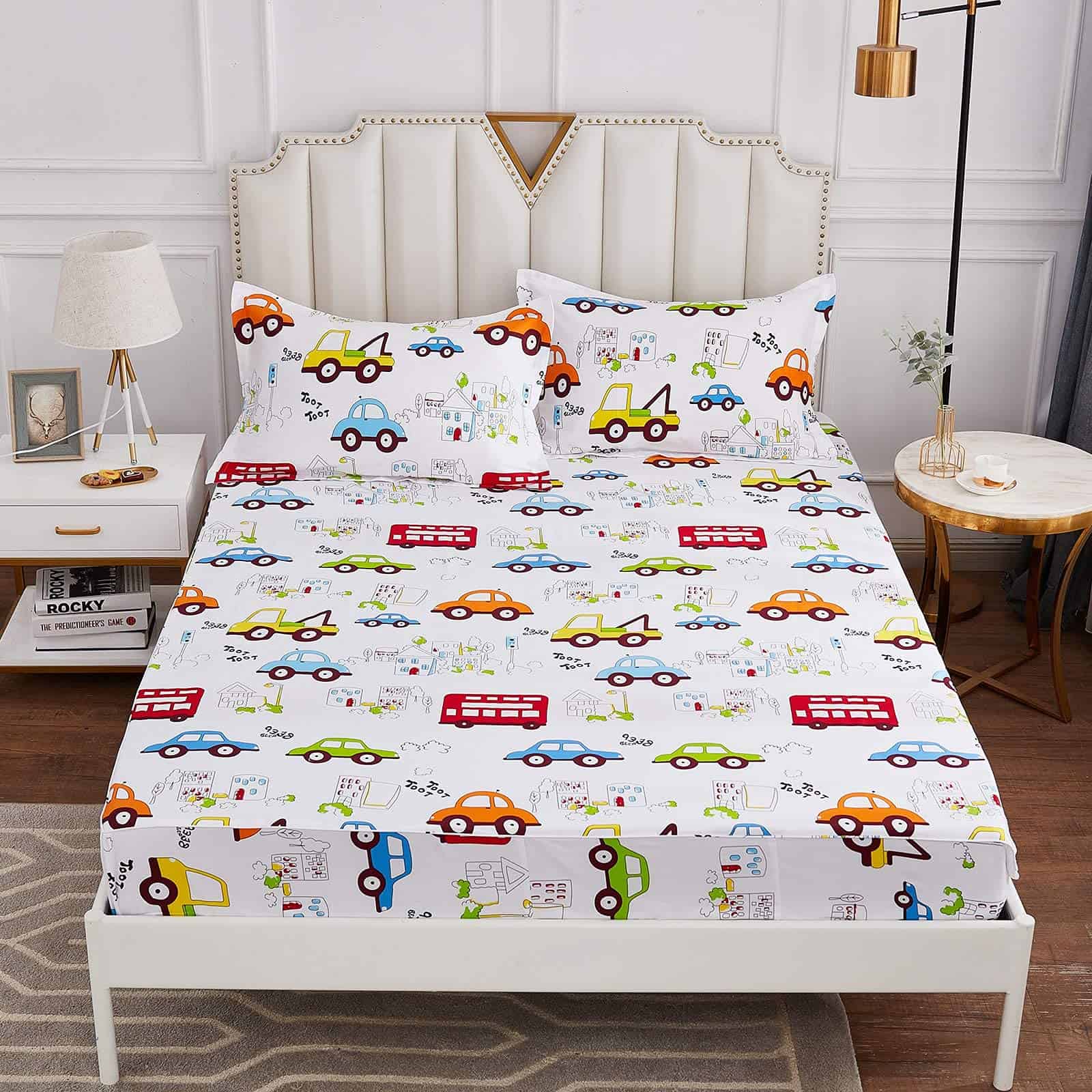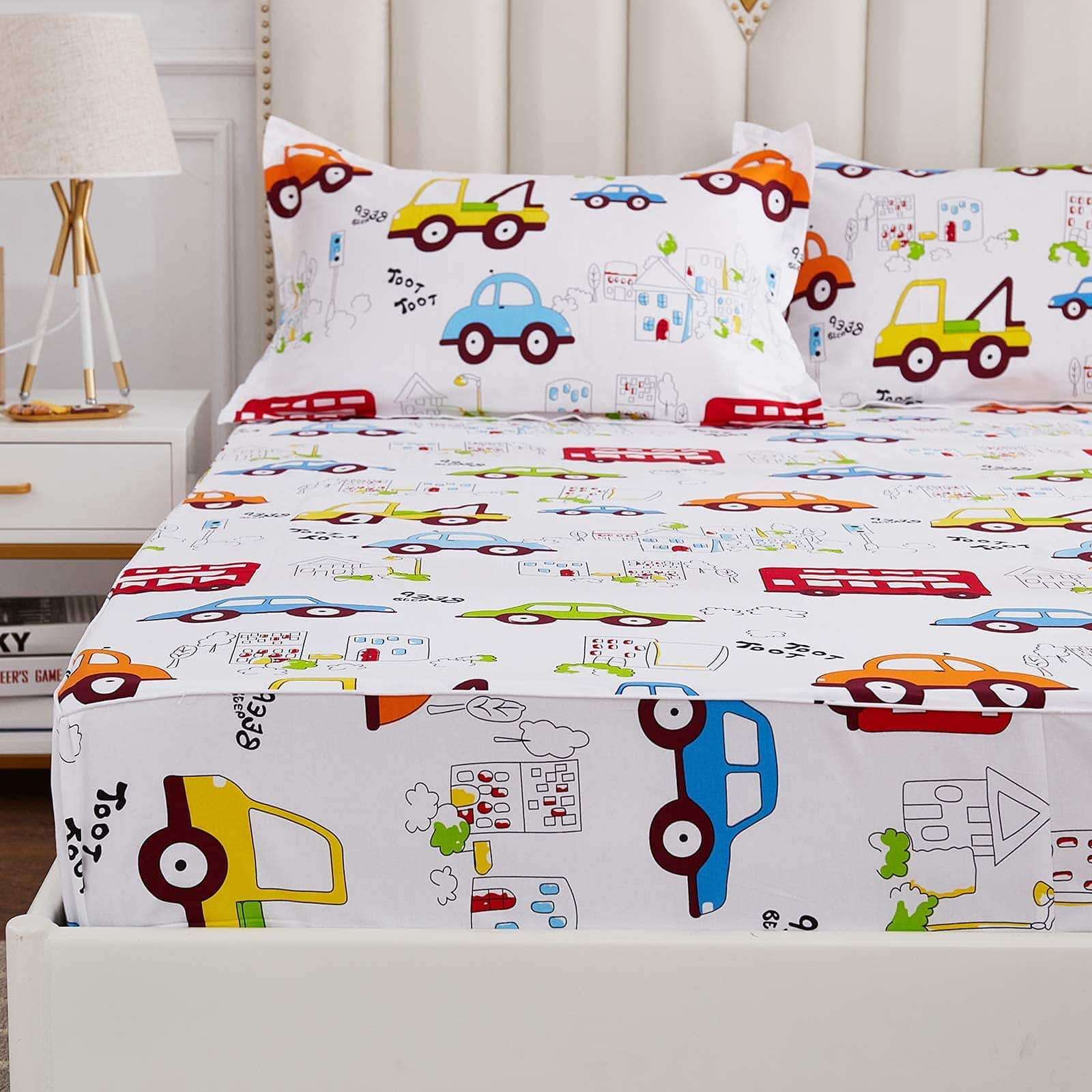 Sábanas 100% algodón súper suaves, acogedoras y de alta calidad. Tejido transpirable y duradero. Con un divertido patrón de coches, los niños lo adoran, más estilo y diversión que los conjuntos de colores sólidos. Sábanas 100% amigables con la piel para los niños. ¡Regalos lindos para los pequeños niños en cualquier ocasión! Se puede lavar a máquina en frío. Se seca rápidamente en secadora a baja temperatura.