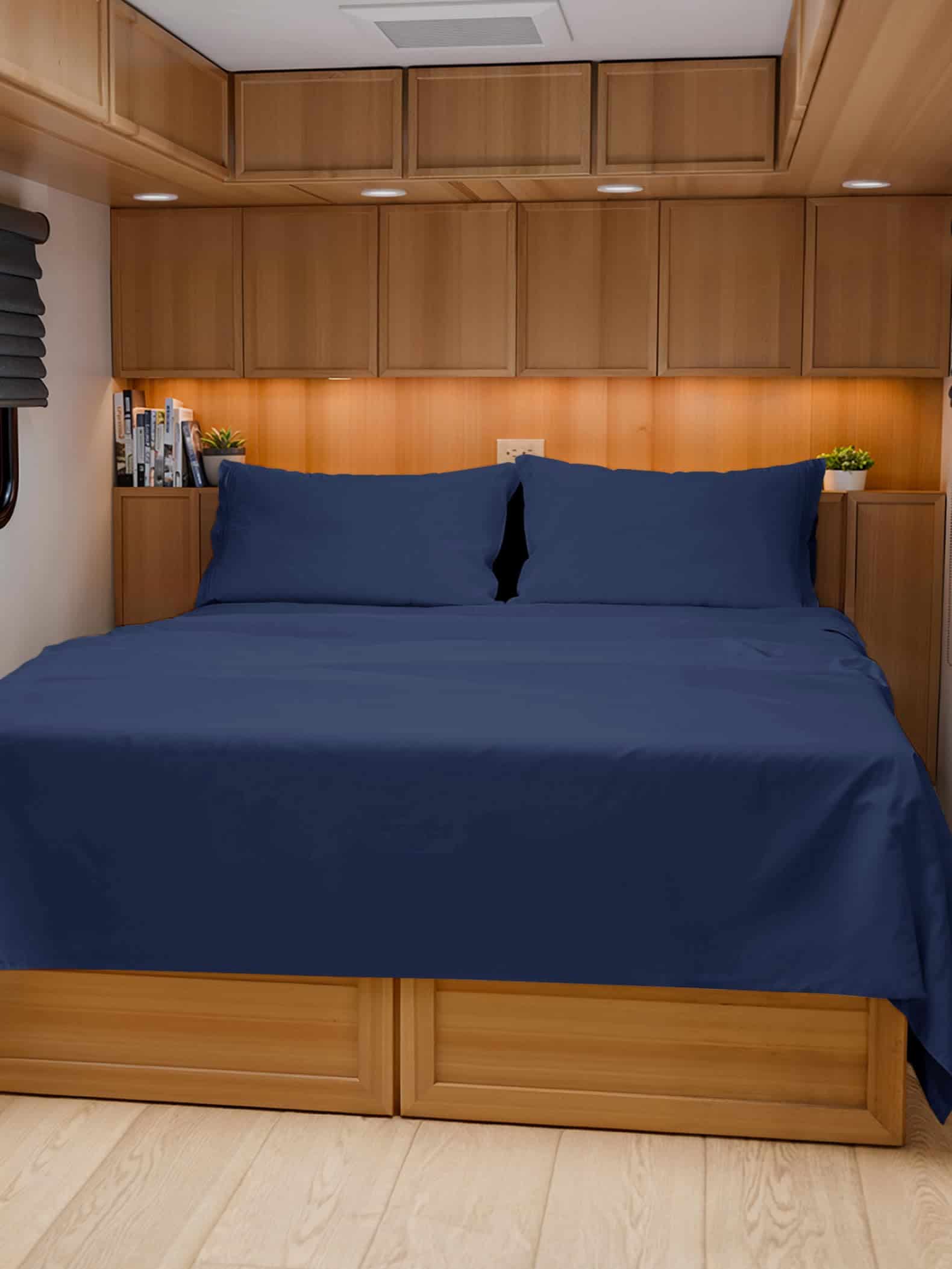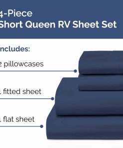 Mejora tu configuración de dormir en tu RV con nuestro juego de 4 piezas de sábanas RV Short Queen, diseñado específicamente para colchones RV Short Queen de 60 x 75. Este juego incluye 2 fundas de almohada (20 x 30), una sábana plana (90 x 102), y una sábana ajustada (60 x 75) con bolsillos profundos para adaptarse a colchones de 8 a 10 pulgadas de profundidad, asegurando un ajuste seguro y firme que se mantiene en su lugar toda la noche. Fabricadas con una tela premium y ultra suave, estas sábanas ofrecen un acabado suave y sin arrugas que agrega un toque de lujo a cualquier RV, camper, o dormitorio. Duraderas y fáciles de mantener, resisten la decoloración, el encogimiento y las arrugas, haciéndolas perfectas para el uso diario en la carretera. Ideales para campistas RV, estas sábanas brindan un ajuste acogedor y adaptado para tu colchón short queen, combinando practicidad, comodidad y elegancia. Lavables a máquina y de bajo mantenimiento, aseguran suavidad y estilo duraderos, lavado tras lavado.