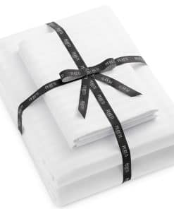 Nuestro juego de sábanas incluye una sábana ajustable con 16″ de bolsillos profundos y bordes elásticos que se adaptan a colchones de diferentes tamaños, garantizando un ajuste seguro y ceñido. Además, vienen con dos fundas de almohada a juego y una sábana plana para completar el look de tu cama.