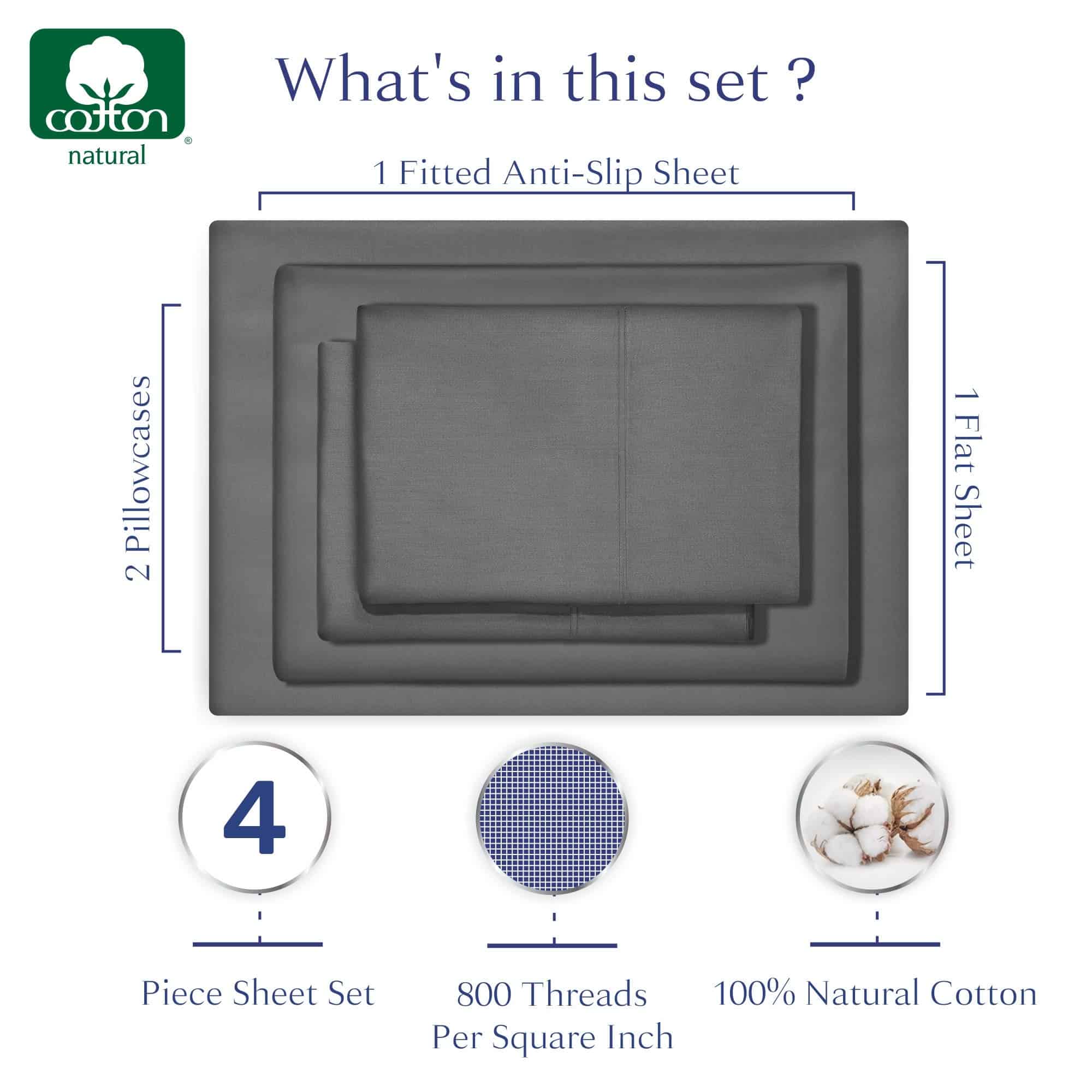 Juego de sábanas Queen 100% algodón satinado con 800 hilos,