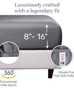 2. Juego de sábanas con un gran ajuste: Nuestro juego de sábanas queen de 4 piezas con bolsillo extra profundo incluye 1 sábana superior (90″ x 102″), 1 sábana bajera ajustable inferior (60″ x 80″) que se ajusta a colchones de 8 a 16 pulgadas de profundidad, y 2 fundas de almohada tamaño estándar/queen (21″ x 32″). El elástico especial antideslizante y ancho no se afloja ni se amontona, y los indicadores de lado de la cabeza/pie hacen que hacer la cama sea pan comido.