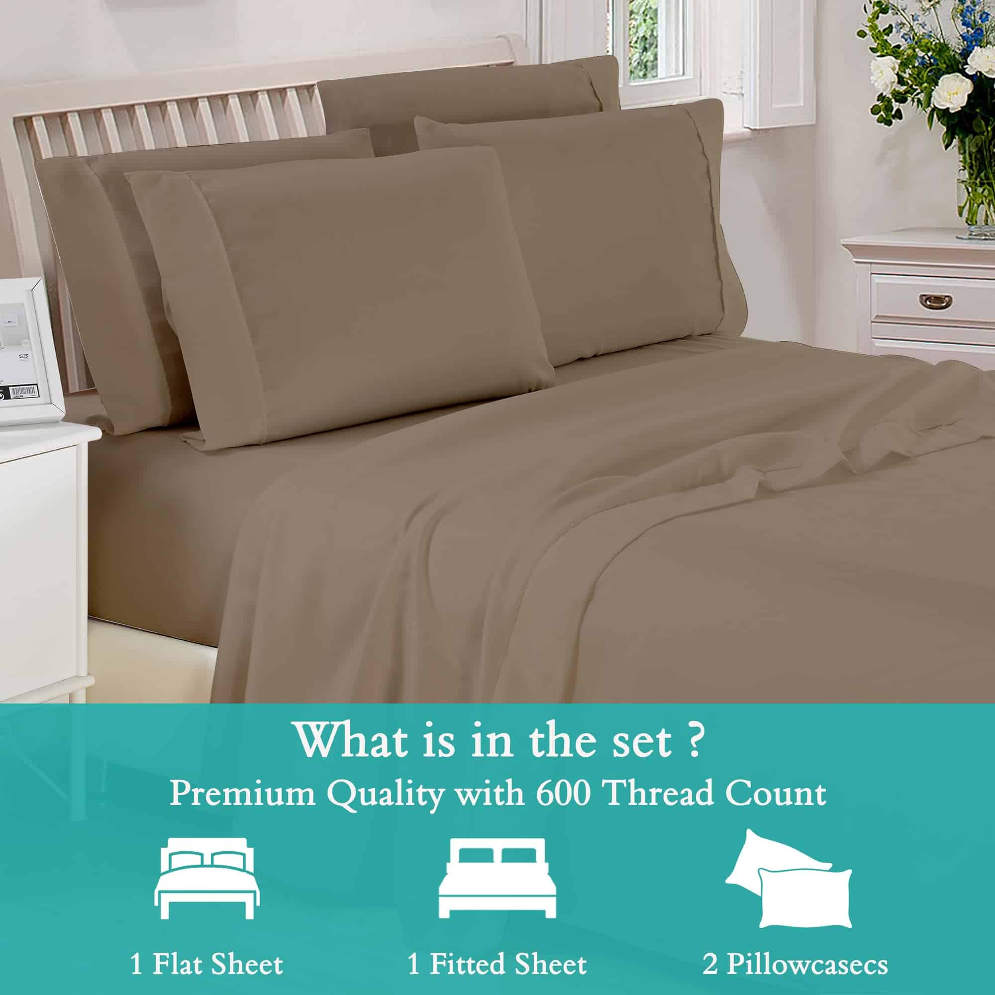 1. JUEGO DE SÁBANAS DE ALTA CALIDAD 100% ALGODÓN EGIPCIO: Dale un cambio a tu hogar con nuestro juego de sábanas de algodón egipcio con tejido satén. Con un recuento de 600 hilos, estas sábanas te brindarán un acabado satinado brillante. Conocidas por su suavidad, estas sábanas queen te proporcionarán la máxima comodidad durante todo el año. 2. PAQUETE INCLUYE: Juego de sábanas de algodón egipcio de 600 hilos para cama Queen que consta de 1 sábana plana (102″ X 90″), 1 sábana bajera (60″ X 80″ + 16″ de bolsillo profundo), 2 fundas de almohada (21″ X 30″). La sábana bajera tiene una alta calidad de elástico expandible que se ajusta a colchones de hasta 16″. Una elección perfecta para dar un borde a la mejora visual de la decoración de tu dormitorio. La funda de almohada se ajusta fácilmente a la almohada, ya que las sábanas queen de algodón se ajustan al colchón de hasta 16″. 3. SÁBANAS DE ALGODÓN DE CALIDAD PURA: Nuestro juego de sábanas de algodón queen está certificado como STANDARD 100 por OEKO-TEX. Esto asegura que no se utilizan productos químicos dañinos durante la fabricación del juego de sábanas de algodón queen. Estas sábanas de cama egipcias de algodón son duraderas, naturales y seguras para el planeta en comparación con otras sábanas que atraen nada más que polvo. 4. FÁCIL DE LAVAR Y MANTENER: Cada sábana producida en nuestra instalación se somete a una prueba para garantizar la calidad y durabilidad de las sábanas. Estas sábanas de algodón son fáciles de lavar y mantener. Comienza lavándolas primero en agua tibia y sécalas a baja temperatura. Con cada lavado, el material se vuelve suave, haciendo que las sábanas de algodón queen sean más suaves y sedosas. Las sábanas se pueden lavar regularmente. 5. UN GRAN ARTÍCULO PARA REGALAR: Regala un presente para recordar a tu familia y amigos. Estas sábanas de algodón se pueden regalar en varias ocasiones como cumpleaños, aniversarios, Halloween, Navidad, inauguración de casa y muchos más. Regala estas sábanas de cama de algodón a tus seres queridos y verás cómo se convierten en sus favoritas.