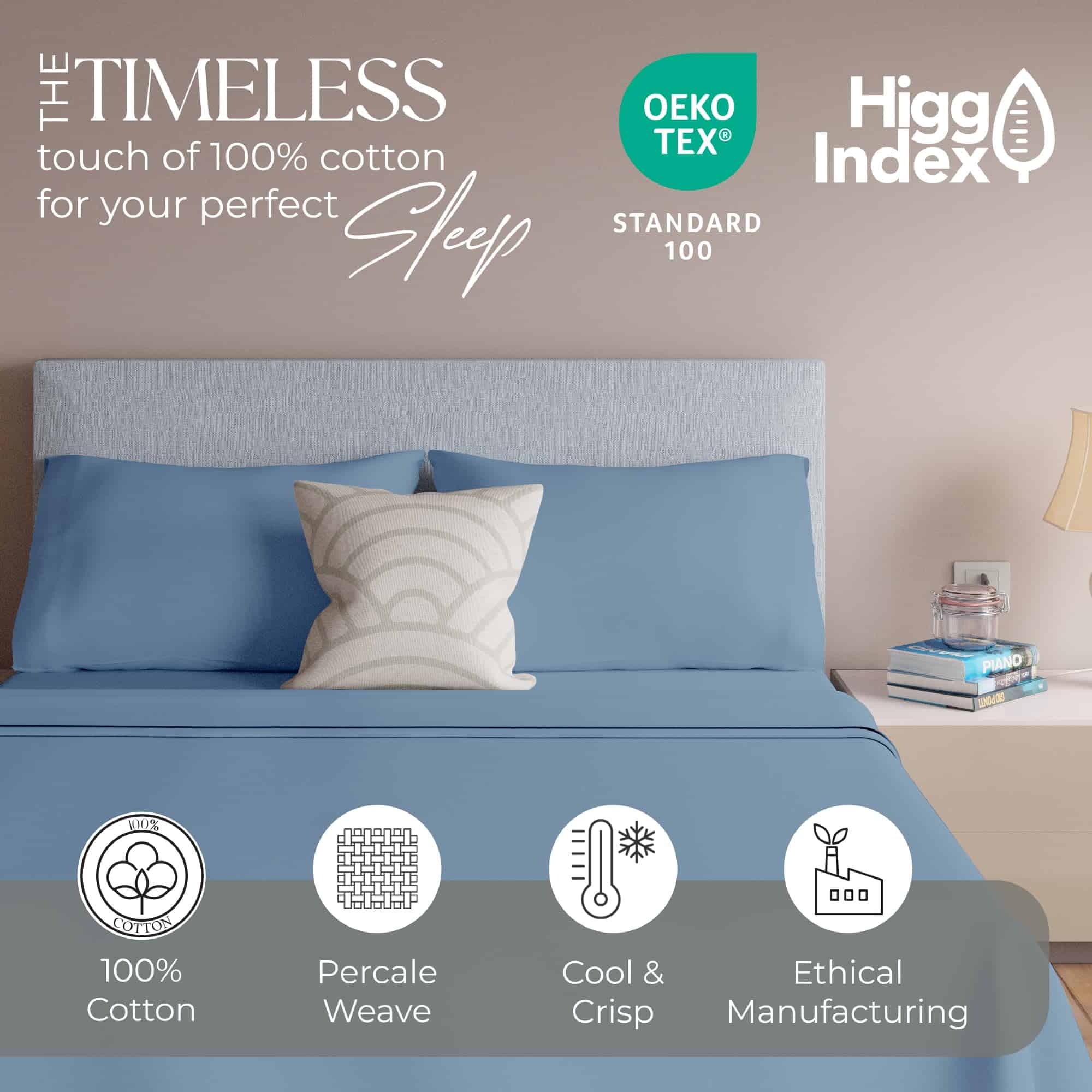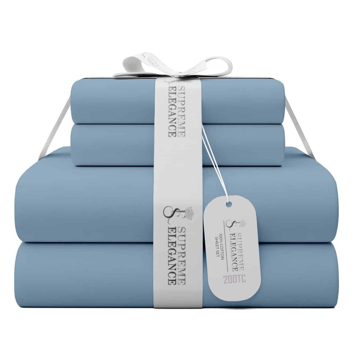 Juego de sábanas Queen bluish gray 100% algodón, sábanas de