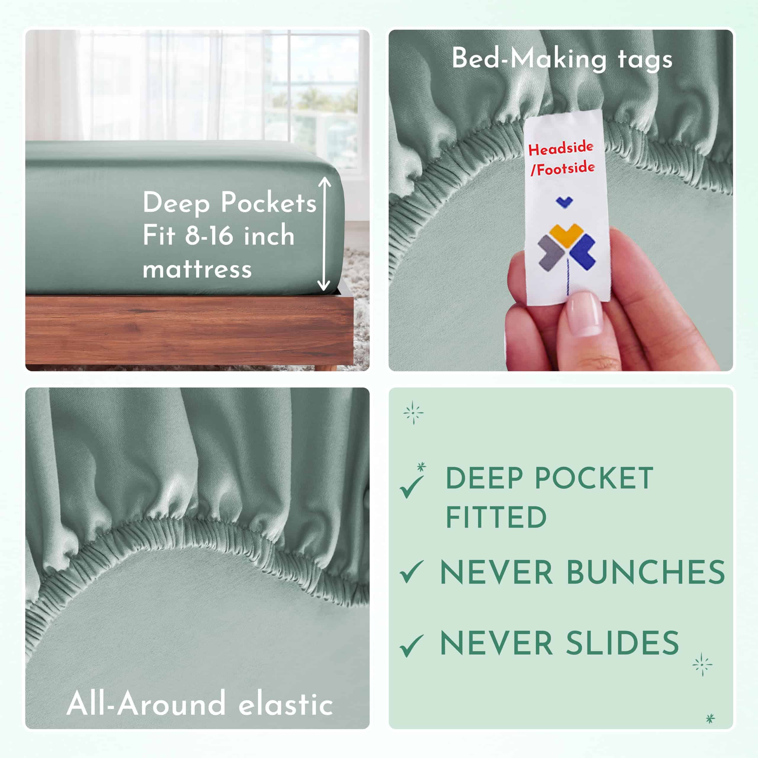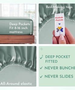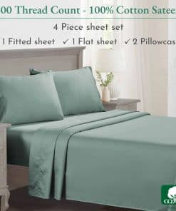 Este juego de sábanas de algodón queen de bolsillos profundos de 4 piezas incluye 1 sábana plana (90″ de ancho x 102″ de largo), 1 sábana ajustable (60″ de ancho x 80″ de largo) y 2 fundas de almohada (21″ de ancho x 32″ de largo) que se ajustan a almohadas estándar y queen. La sábana ajustable inferior tiene un elástico duradero alrededor para adaptarse a colchones de 8 a 16 pulgadas de profundidad, y un indicador de lado de los pies para hacer la cama fácilmente. Lava y seca nuestras sábanas a configuraciones regulares, y mantendrán su calidad durante años. Nuestro juego de sábanas queen de algodón es duradero y no se apelotona, destiñe ni encoge. El algodón puro es suave en tu piel. Nuestras sábanas de algodón son frescas y transpirables, ayudando a regular la temperatura corporal para un sueño reparador incluso en verano. Certificado Oekotex Standard 100, probado para sustancias nocivas para proteger tu salud. Comprometidos con la sostenibilidad – En 2022 y 2023, donamos más de 22,000 piezas de ropa de cama a organizaciones benéficas locales en los EE. UU. No usamos plástico en nuestro embalaje, y nuestras sábanas se producen en nuestra fábrica propiedad de la familia en India. Compra con confianza con nuestra política de devolución de 30 días, incluso si has lavado o usado nuestro producto.