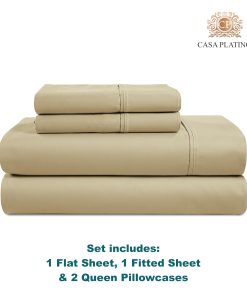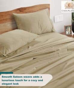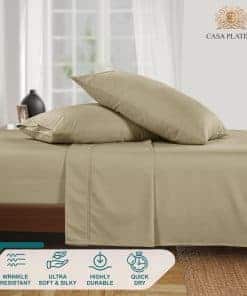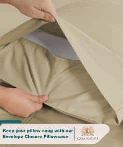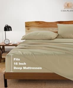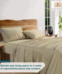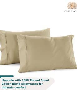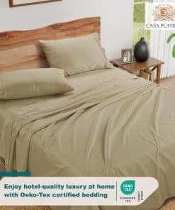 Duerma con elegancia y comodidad con la ropa de cama de Casa Platino. Nuestras lujosas sábanas están hechas de una mezcla única de algodón ultra suave y poliéster de alta calidad. El elegante tejido de sarga se siente sedoso suave contra la piel y proporciona un toque de elegancia a cualquier dormitorio. Nuestras sábanas y fundas de almohada ricas en algodón brindan comodidad sin comprometer el estilo o la calidad. El material ligero y transpirable se siente fresco durante las noches calurosas de verano y lo mantiene cálido durante el invierno. Siéntase descansado y renovado durante todo el año. Nuestra gama de sábanas de 1000 hilos es ultra suave, extremadamente transpirable, altamente duradera y resistente, de larga duración, sin arrugas, resistente a la decoloración y lujosamente sedosa. Las sábanas de Casa Platino son seguras para su piel y para el medio ambiente. Nuestros textiles se fabrican en una fábrica certificada conforme al estándar 100 de OEKO-TEX, que garantiza que no se utilizan productos químicos dañinos.
