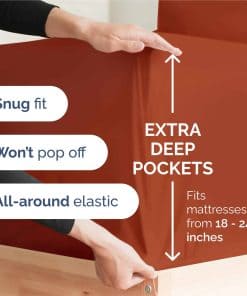 Estas sábanas queen con bolsillos extra profundos son la definición de lujo y comodidad. Hechas de microfibra ultra suave, son más suaves que las sábanas de algodón y brindan una sensación ligera y transpirable. Perfectas para colchones extra profundos, las sábanas cuentan con una sábana bajera con elástico que se ajusta cómodamente alrededor de tu colchón. El juego incluye una sábana encimera y 2 fundas de almohada con un hermoso diseño de bordado. Ideales para colchones con colchonetas dobles, como colchonetas de memoria o espuma, estas sábanas se mantendrán en su lugar sin importar cuánto te muevas durante la noche. Con dimensiones generosas y un ajuste perfecto, estas sábanas terracota serán la adición perfecta a tu dormitorio para una noche de sueño reparador y confort absoluto.