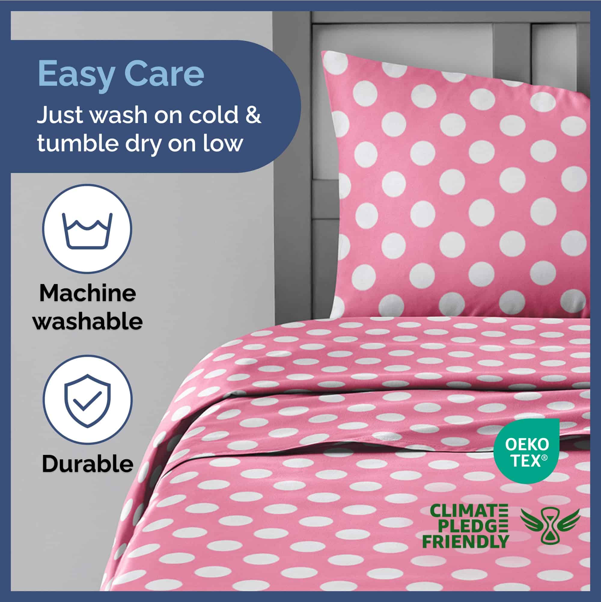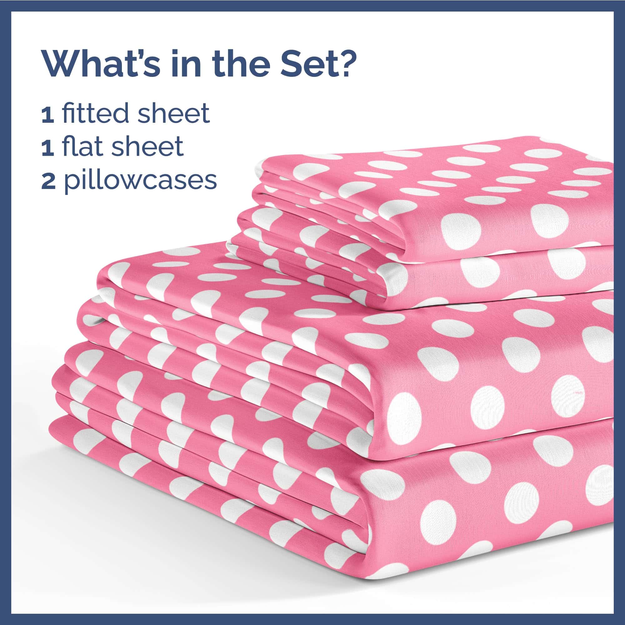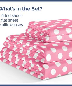 Juego de Sábanas Queen de 4 Piezas con Lunares Rojo Rosa