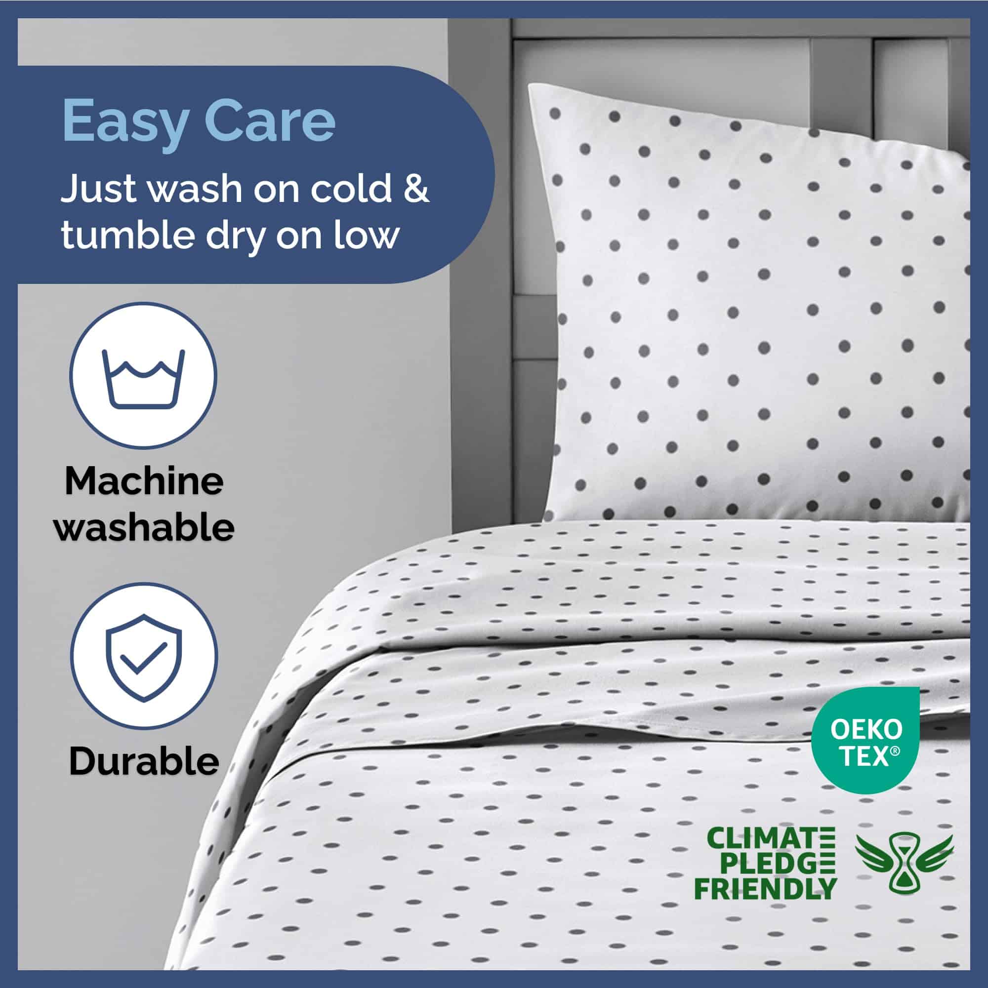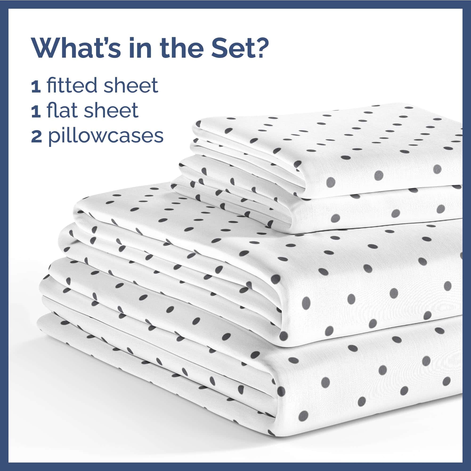 Juego de sábanas queen de 4 piezas para niños con lunares