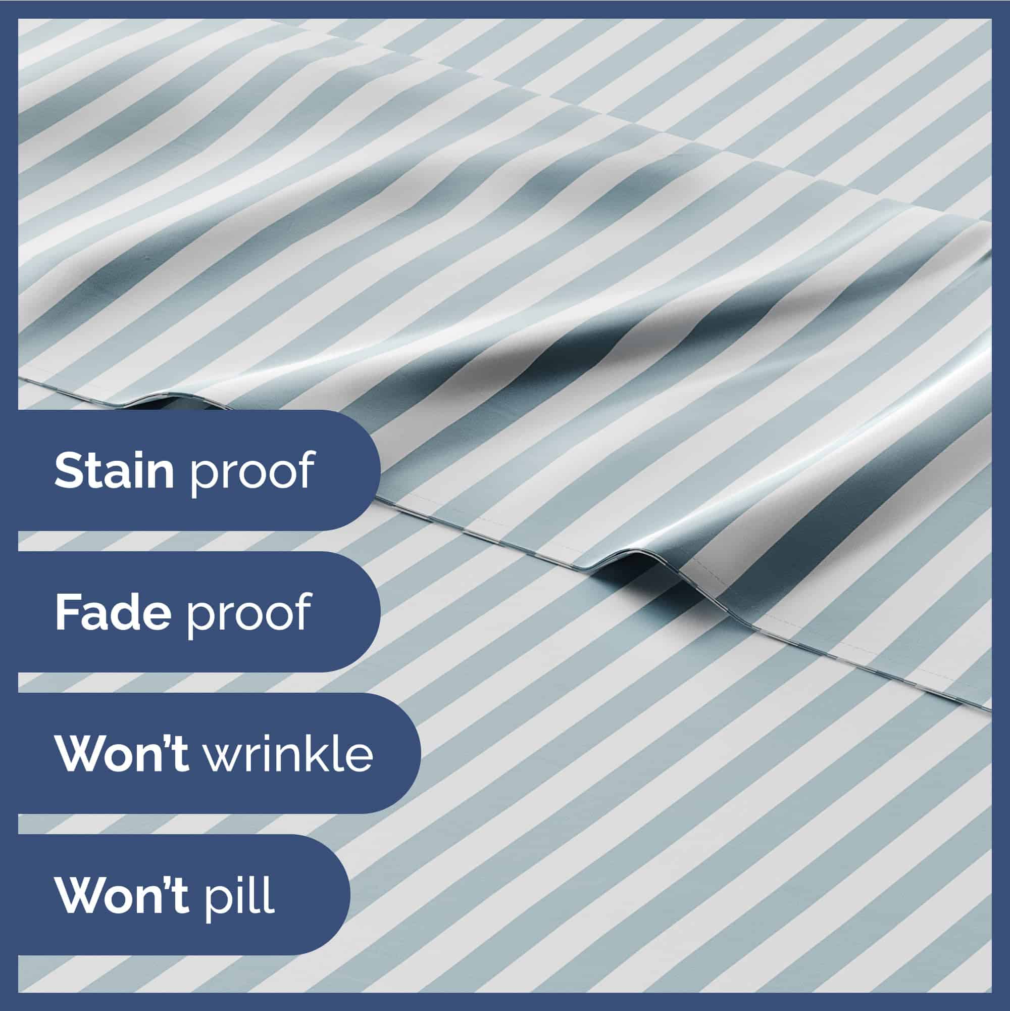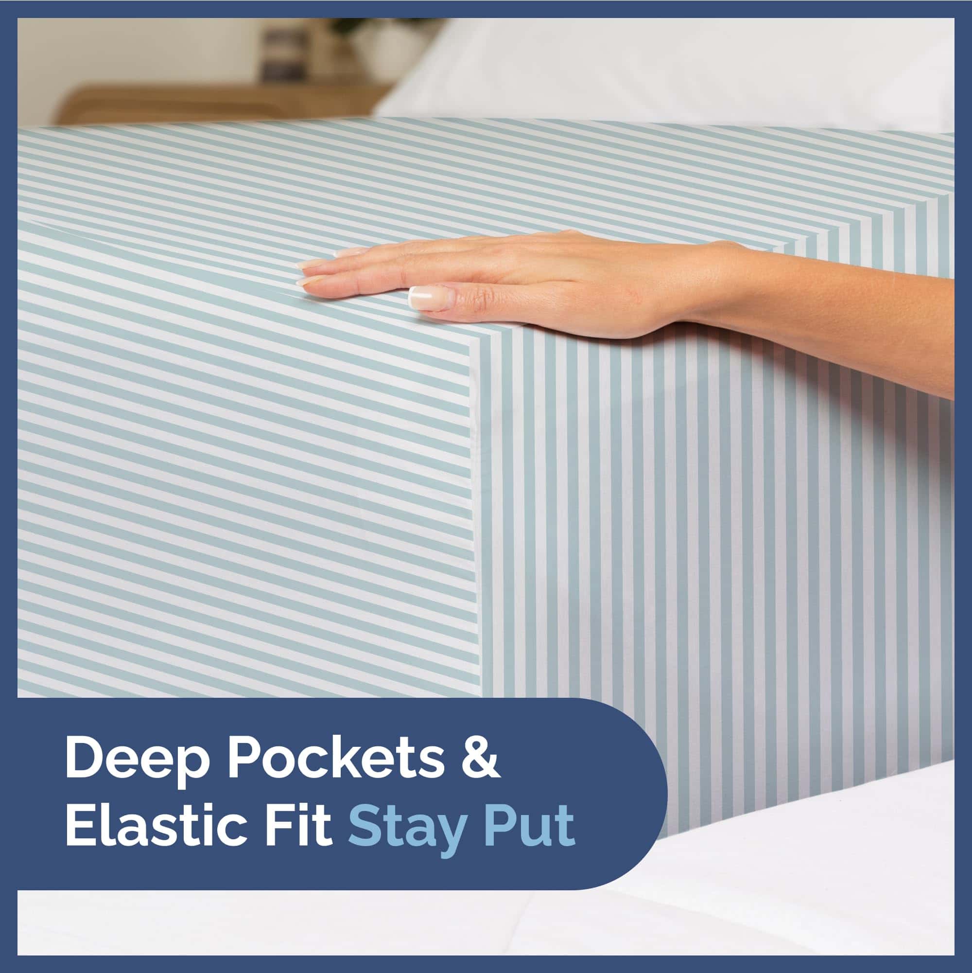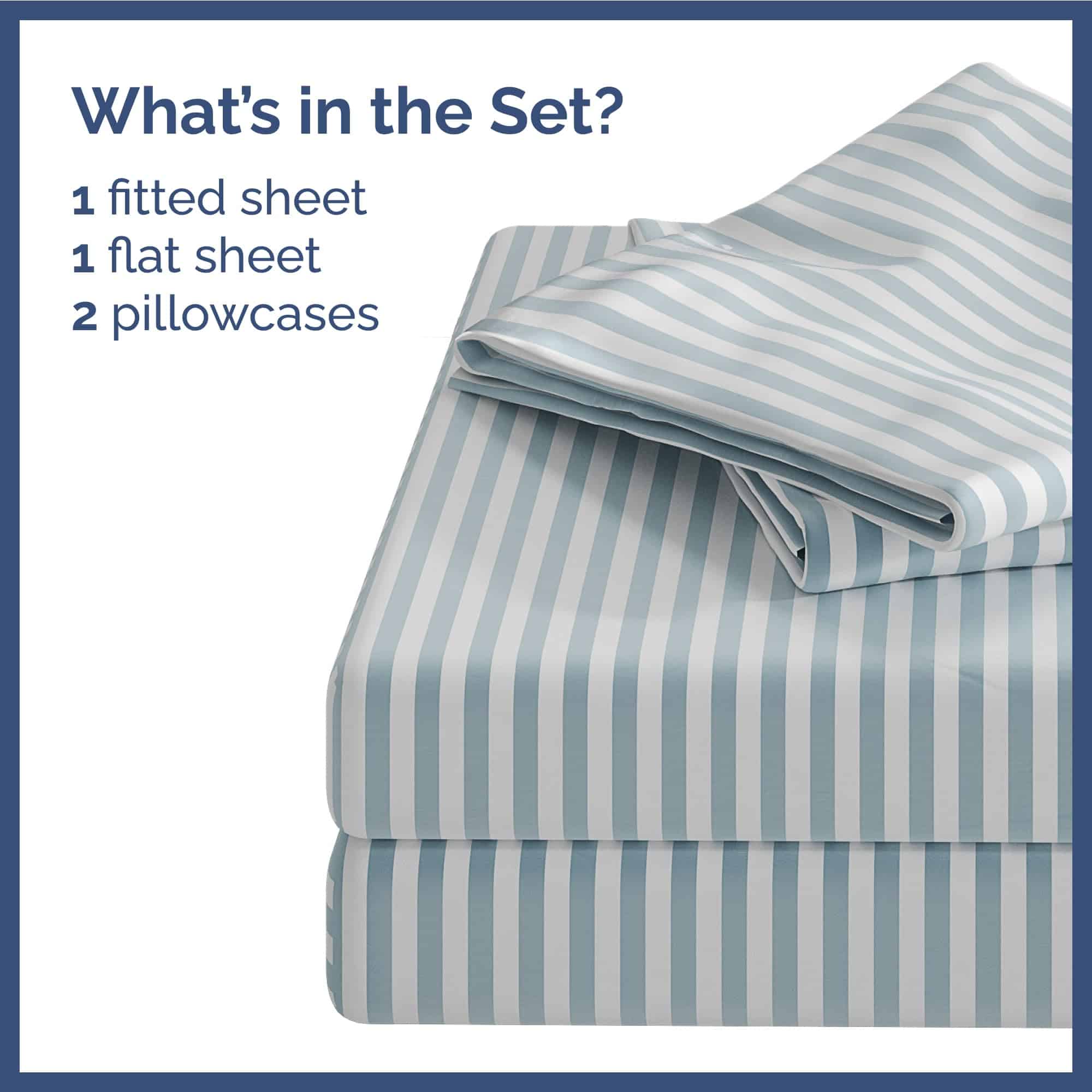 Juego de sábanas Queen de 4 piezas para -Verde con rayas
