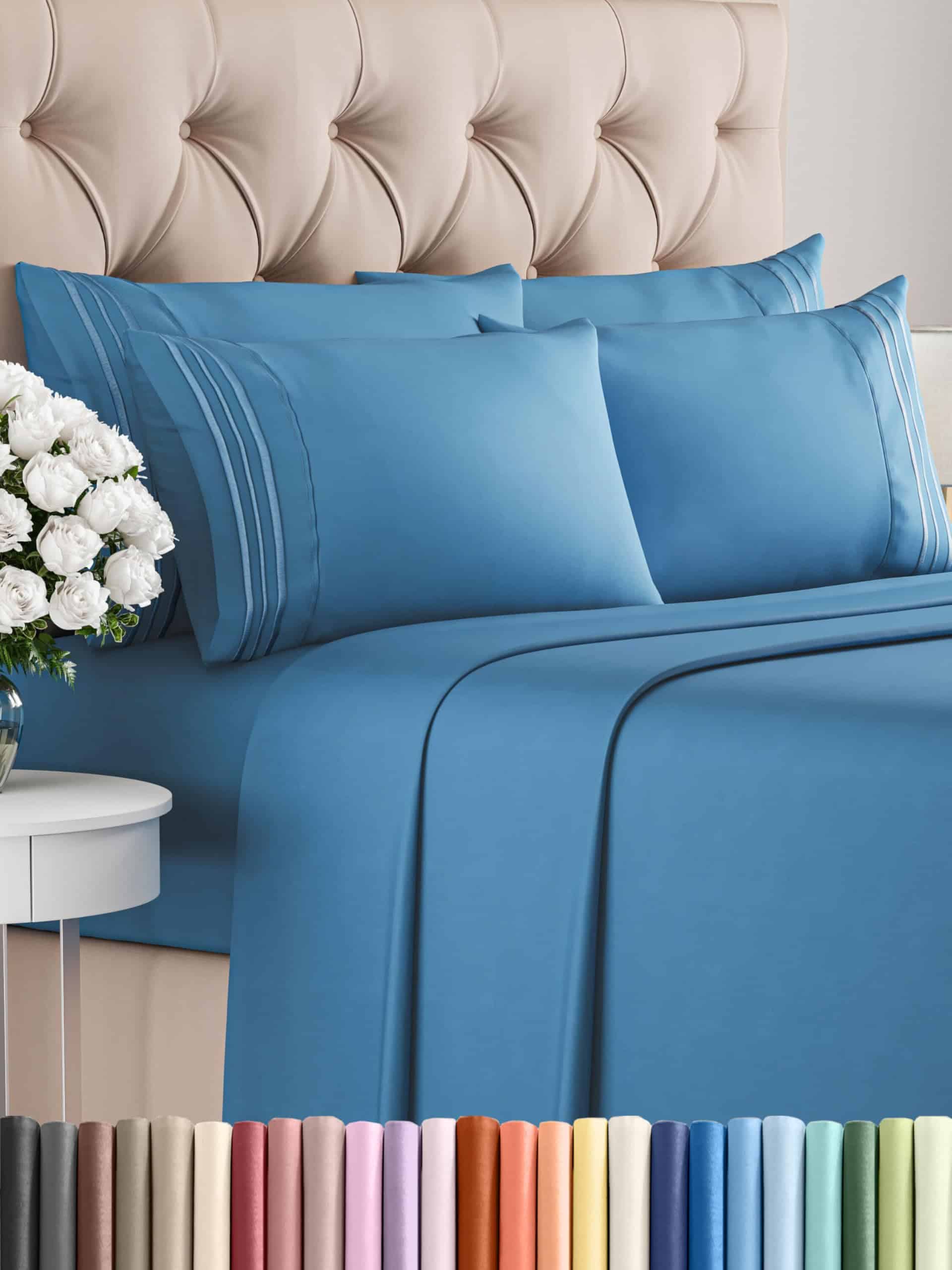 Juego de sábanas Queen de 6 piezas – Cómodas, -Azul Denim