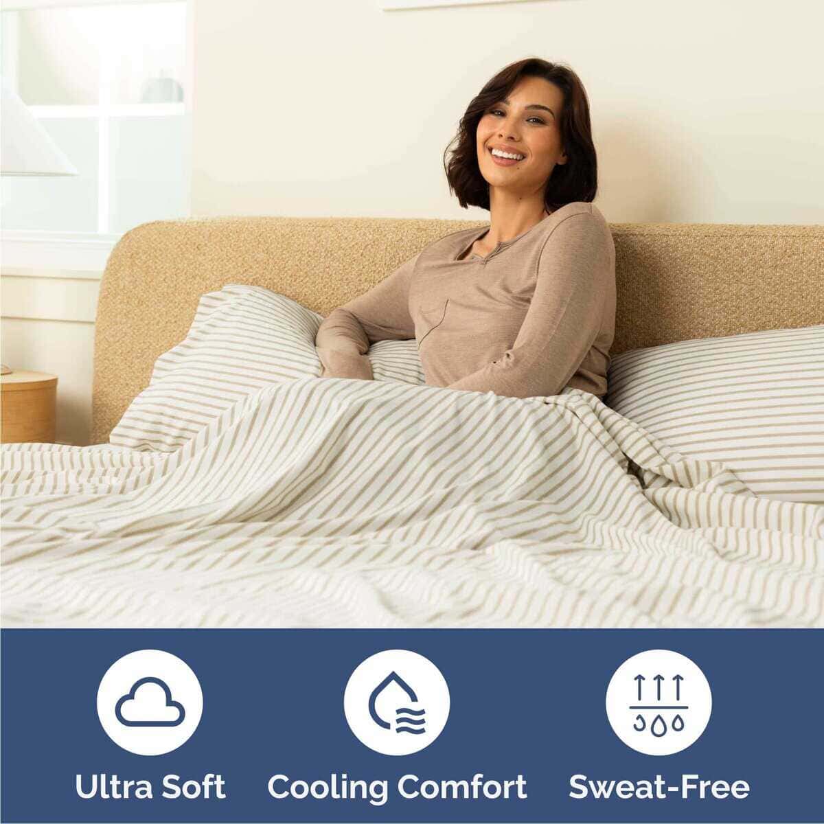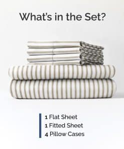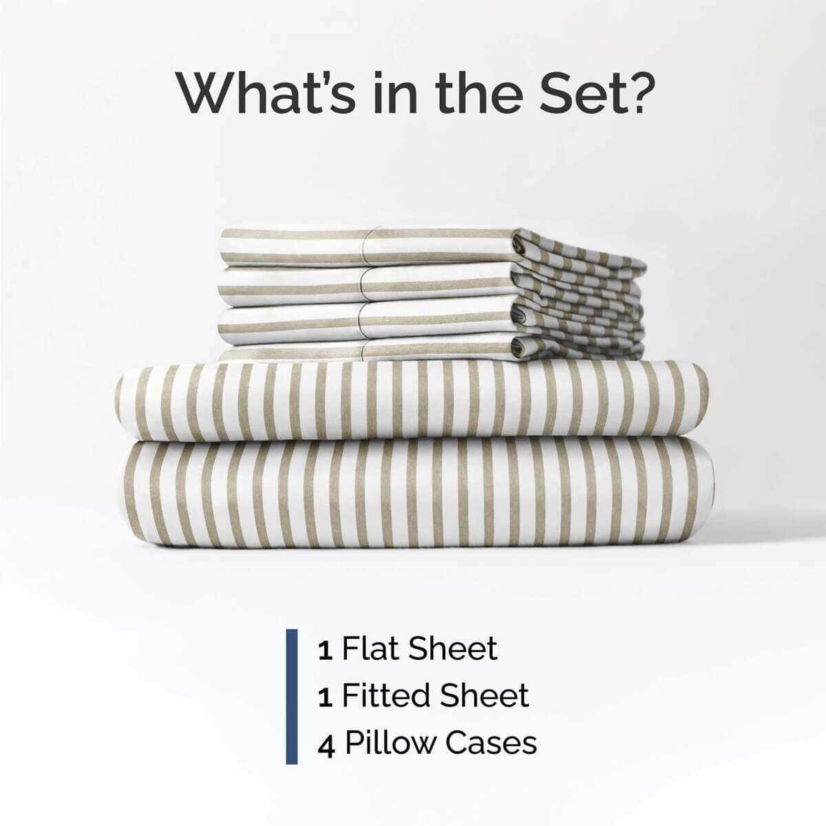 Juego de Sábanas Queen de 6 Piezas – Cómodas, -Beige Rayas