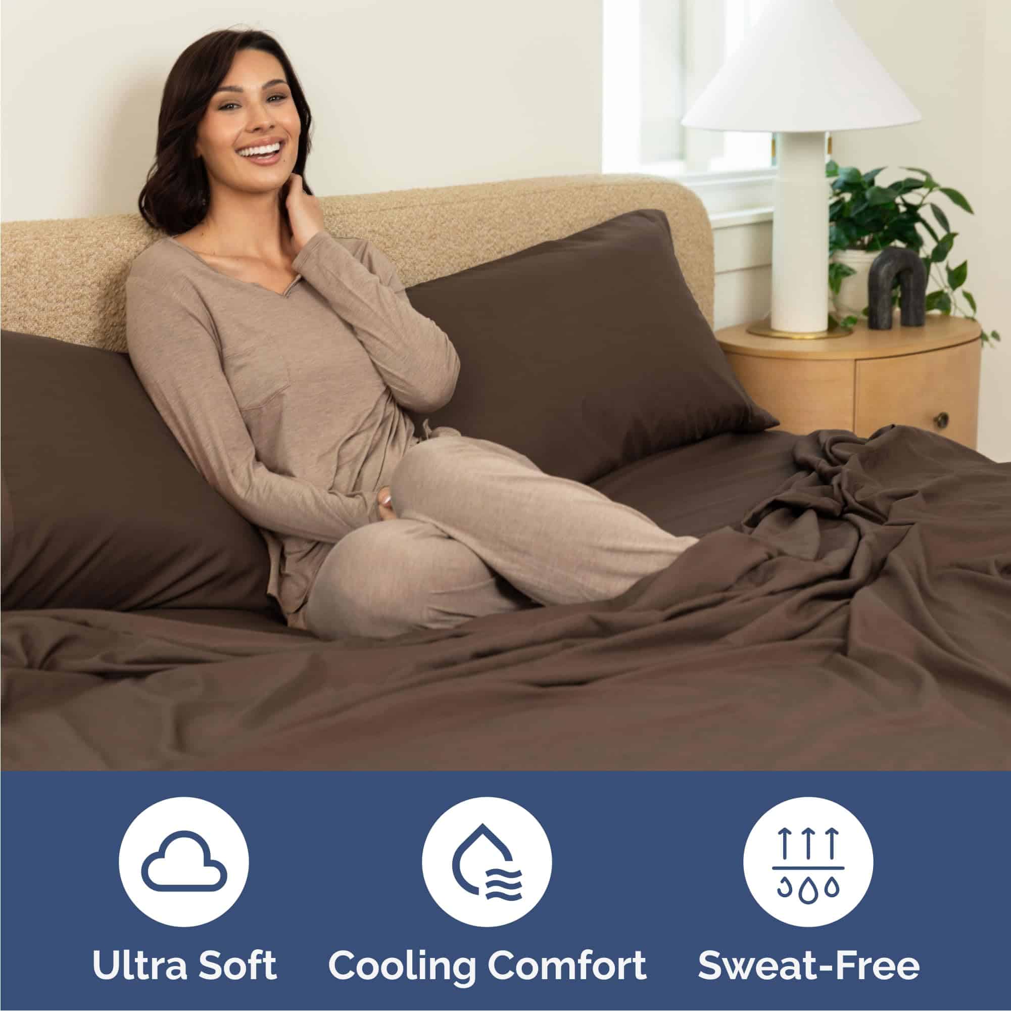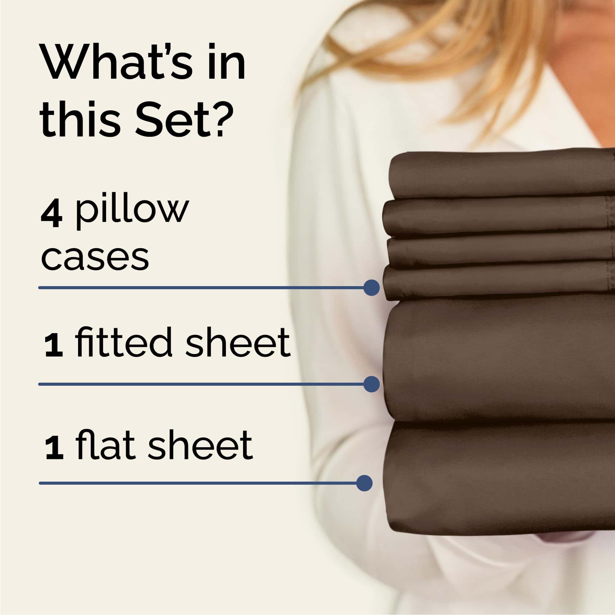 Juego de sábanas Queen de 6 piezas – Cómodas, -Café
