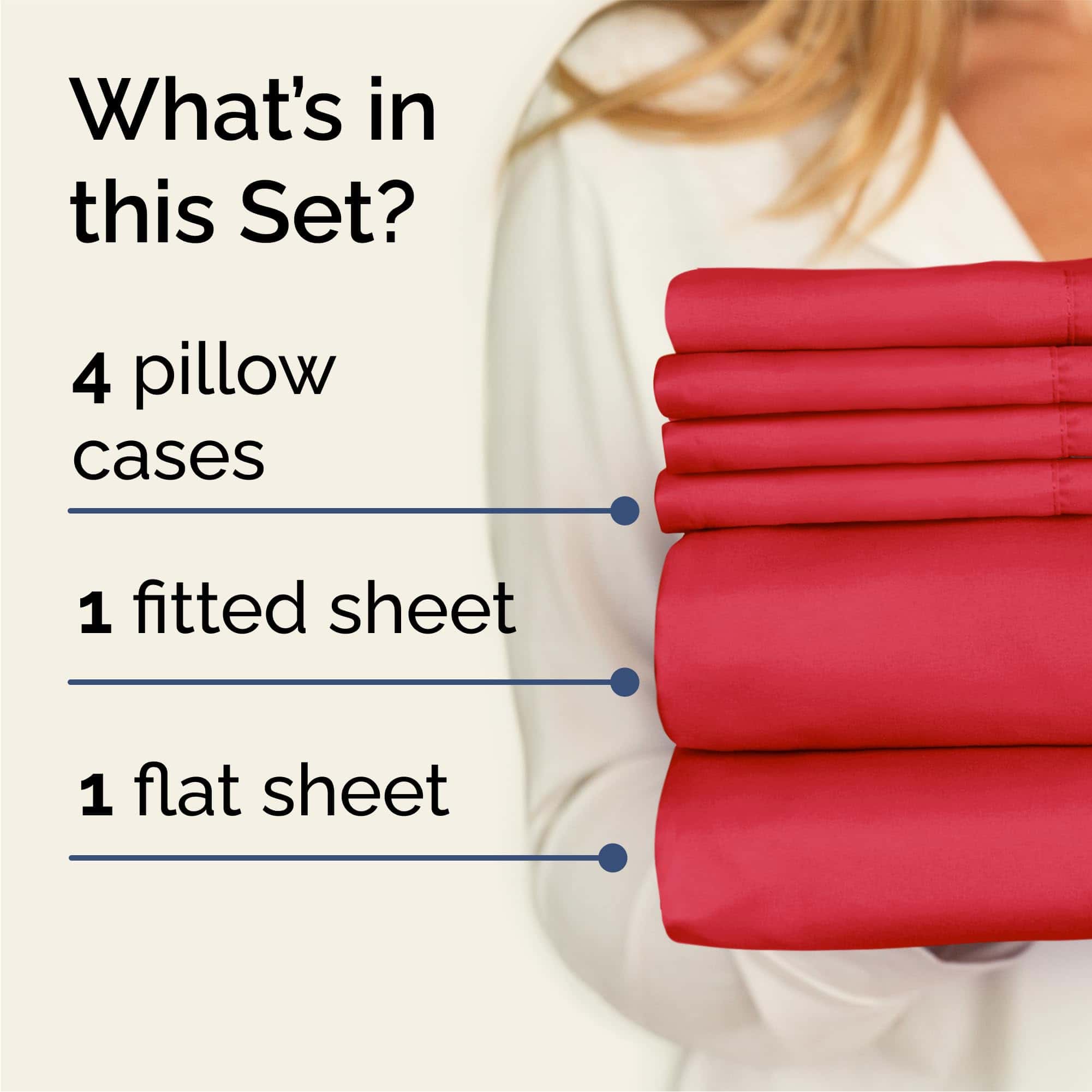 Juego de Sábanas Queen de 6 Piezas – Cómodo, -Rojo