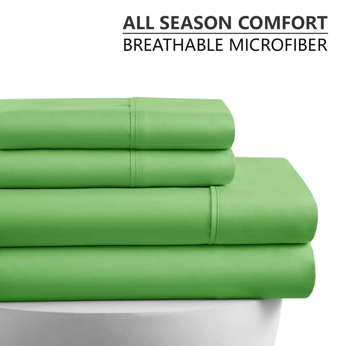 1. SÁBANAS DE MICROFIBRA ULTRA SUAVE: Disfruta del lujo de un juego de sábanas de microfibra de doble cepillado de 110GSM, que proporcionan una sensación ultra suave y transpirable, perfectas para una comodidad durante todo el año.