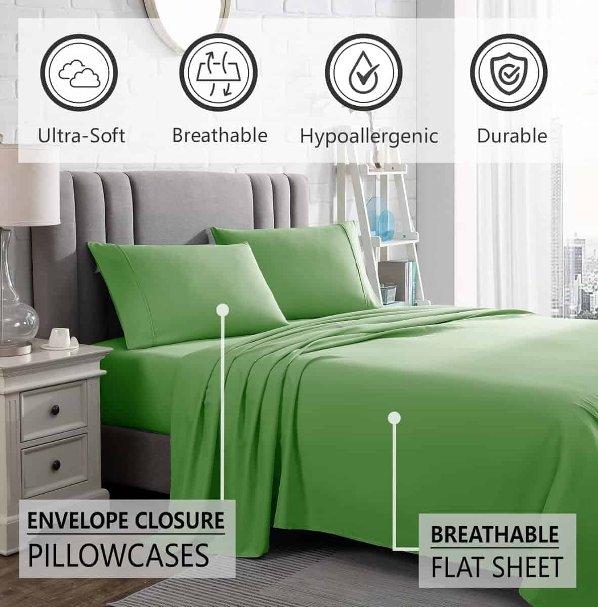 2. JUEGO DE SÁBANAS TAMAÑO QUEEN DE 4 PIEZAS: Ajuste perfecto para colchones queen, los bolsillos profundos acomodan colchones de hasta 15 pulgadas de profundidad, asegurando un ajuste ceñido. El paquete incluye 1 sábana ajustable (60″x80″), 1 sábana plana (90″x101″), y 2 fundas de almohada con cierre de sobre (20″x30″).