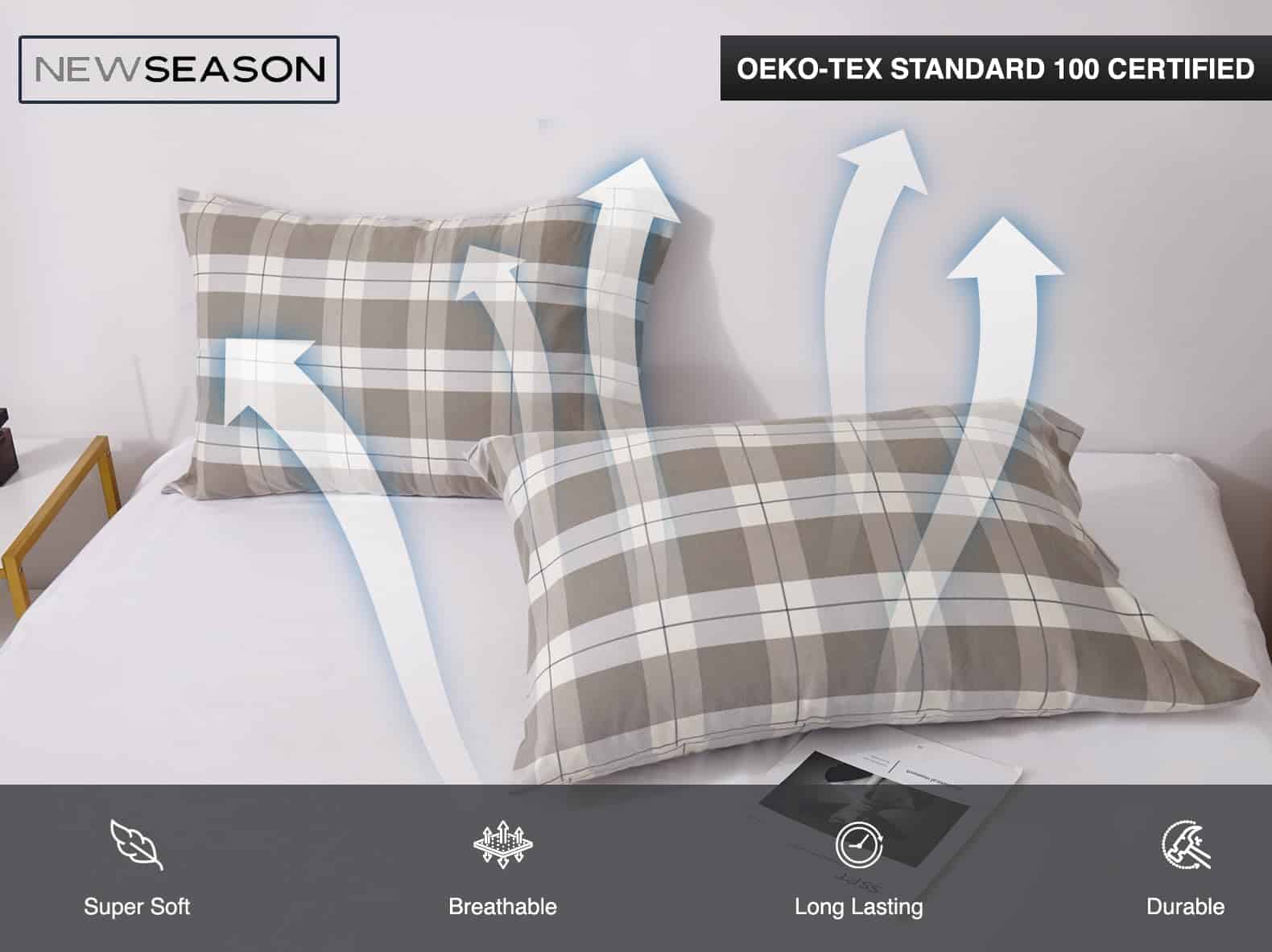 4. Sábana bajera de bolsillo profundo: La sábana ajustable tiene un elástico fuerte y duradero alrededor y el bolsillo profundo se ajusta a colchones de hasta 15″.
