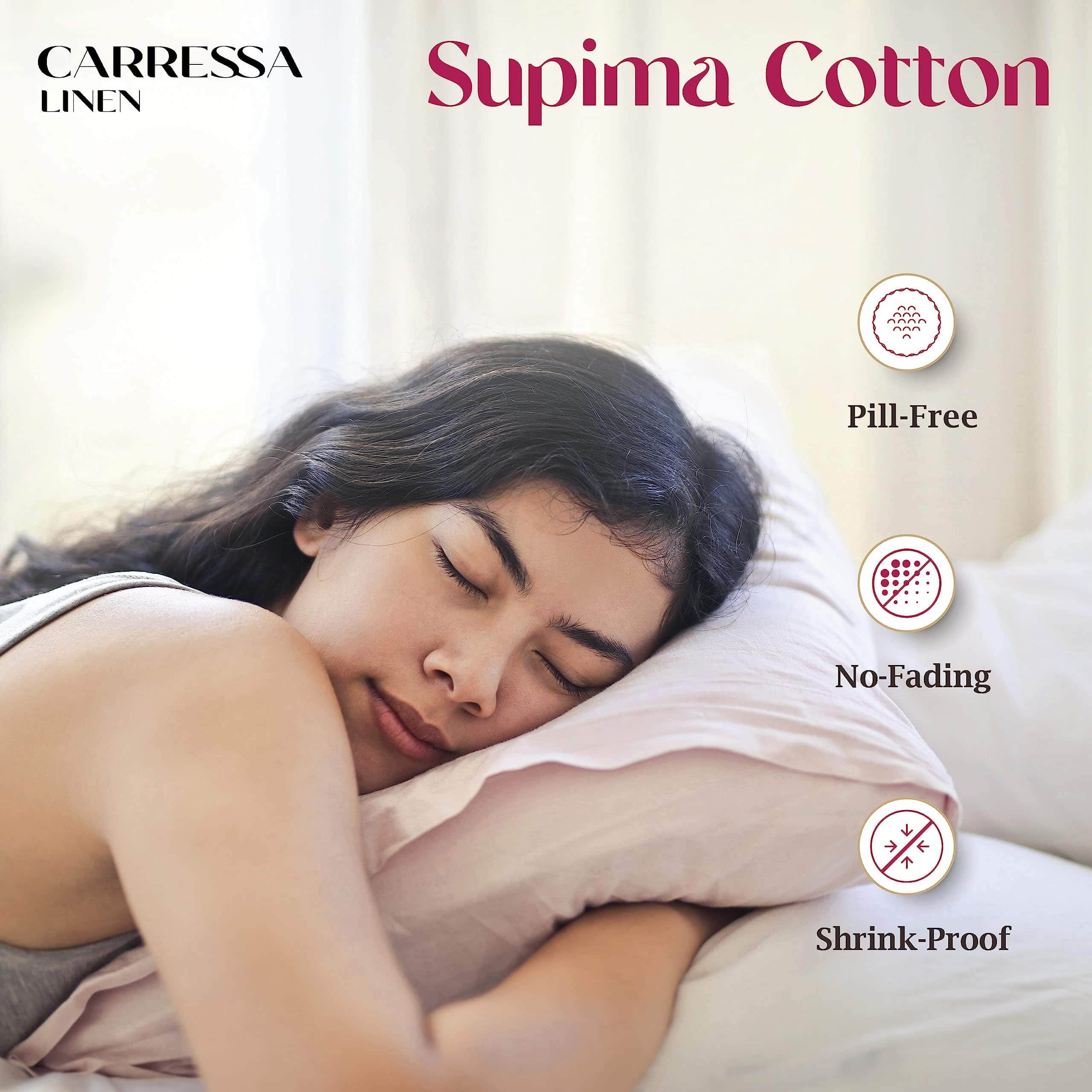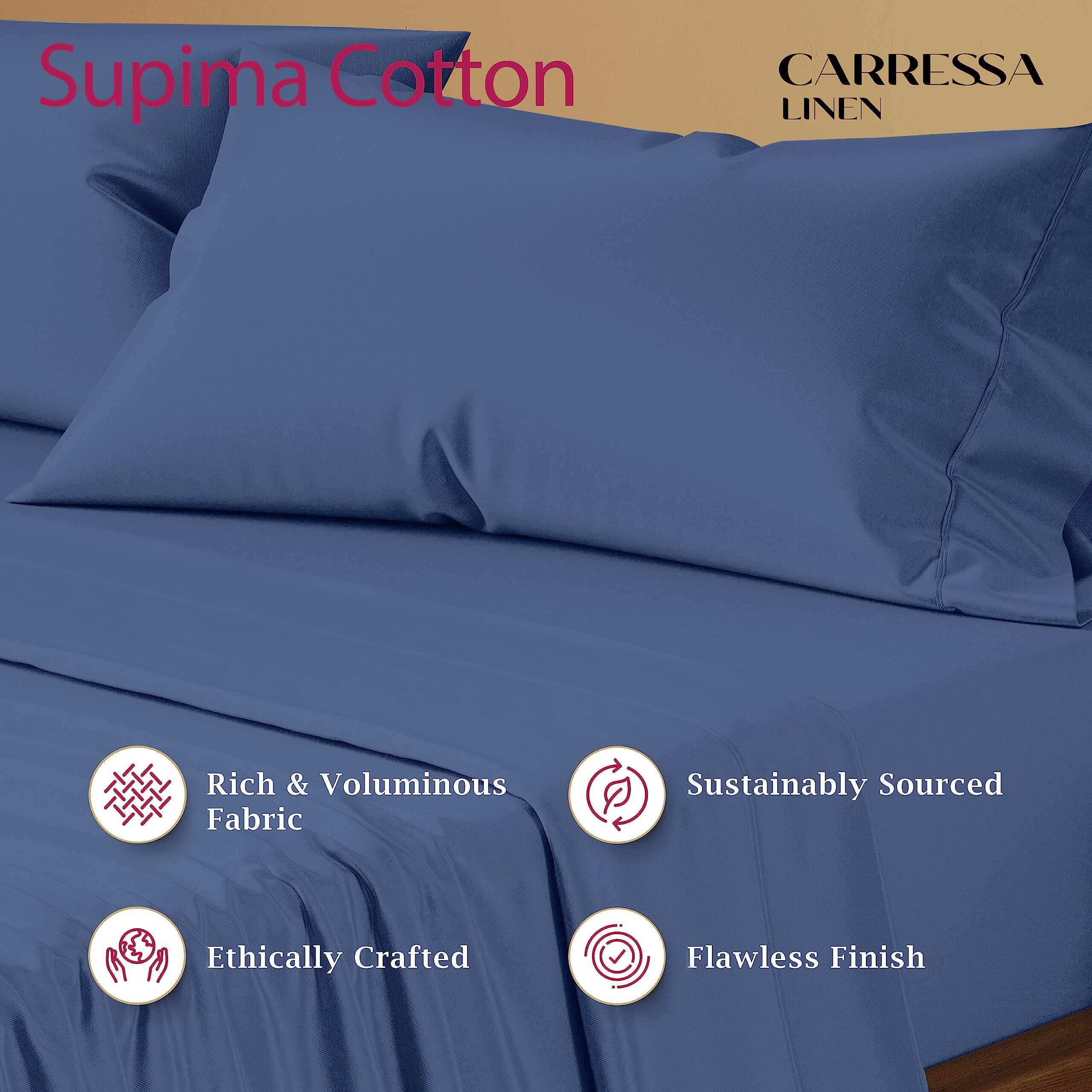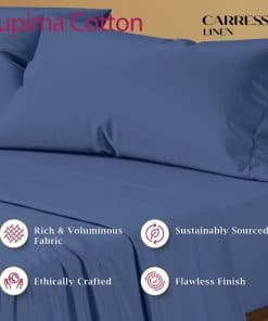 Exclusivamente cultivado y criado en América, el algodón Supima produce las fibras más largas y representa el 1% superior de algodón en el mundo. Tomamos las fibras más largas y finas y las tejemos en una tela de satén de 1200 hilos para obtener las sábanas más resistentes, suaves y cómodas de la tierra. Cada producto lleva una etiqueta de algodón Supima para garantizar la calidad genuina. Duerma en las nubes con nuestras sábanas de lujo de 1200 hilos similares a las de los hoteles de cinco estrellas. Las sábanas de Supima son gruesas, pesadas y voluminosas pero también transpirables y frescas, perfectas para usar durante todo el año. Nuestra sábana ajustable tiene uno de los mejores ajustes con un bolsillo extra profundo (18 pulgadas) que se adapta fácilmente a un colchón Queen ajustable, y un elástico premium que rodea para un ajuste perfecto. Las sábanas de Supima son dos veces más fuertes que el algodón, lo que las hace extremadamente resistentes al desgaste. Agregamos un toque especial: mercerización, que hace que las sábanas de algodón de lujo sean más suaves, coloridas y resistentes a la formación de bolitas, decoloración y encogimiento. Puede lavar las sábanas de algodón Supima en la lavadora en un ciclo suave. Estas sábanas se vuelven más cómodas y suaves después de cada lavado. ¿Quieres hacer sentir especial a tus seres queridos ¿Por qué no echar un vistazo a nuestros juegos de sábanas de algodón Supima de 1200 hilos que son suaves, frescos y las sábanas más cómodas en las que dormirás jamás Combínalas con las fundas de almohada de 1200 hilos de la colección lux de Carressa Linen. En caso de que desees cambiar o devolver los artículos, contáctanos en nuestra tienda dentro de los 30 días posteriores a la compra ¡y lo solucionaremos por ti!