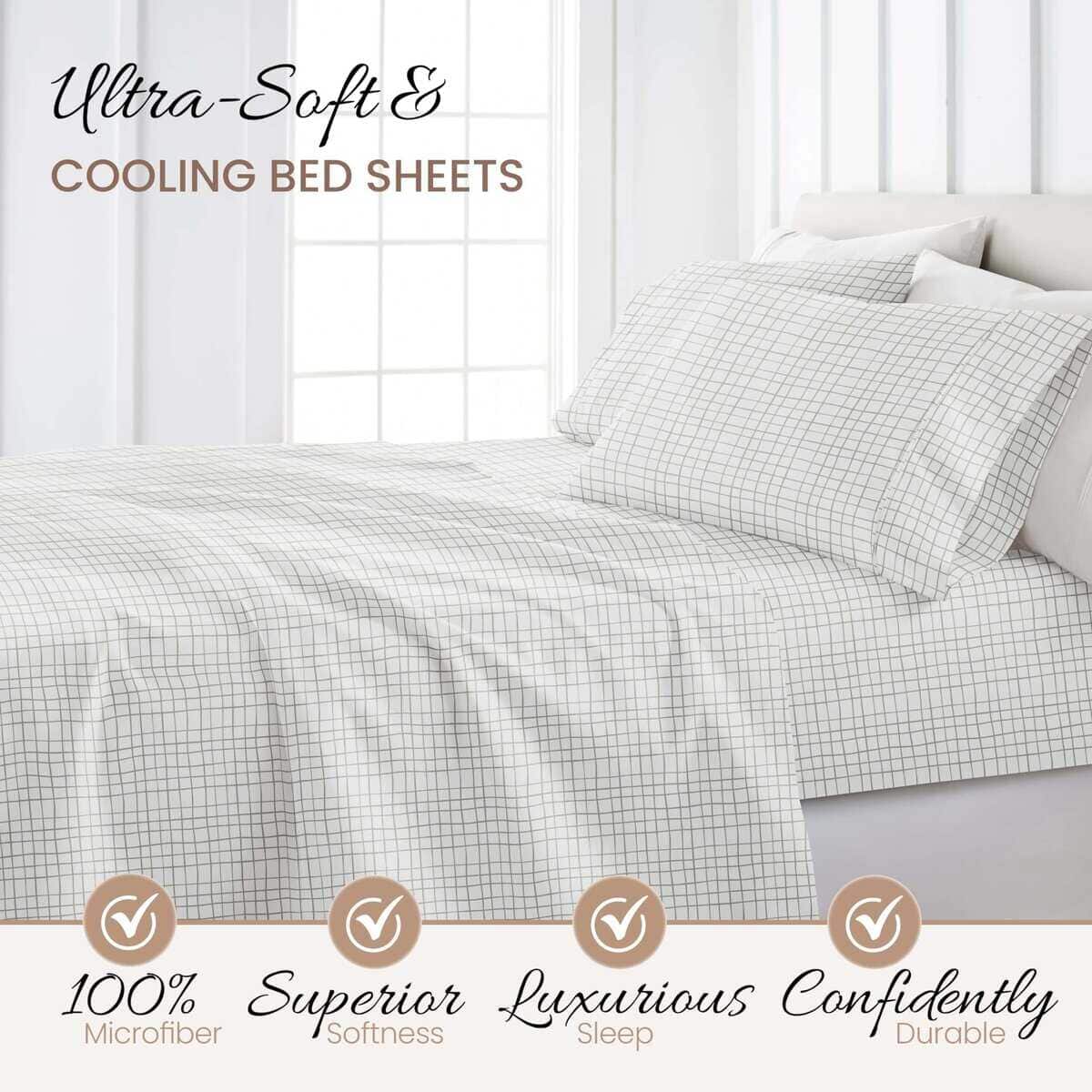 Juego de sábanas Queen de microfibra estampada con doble