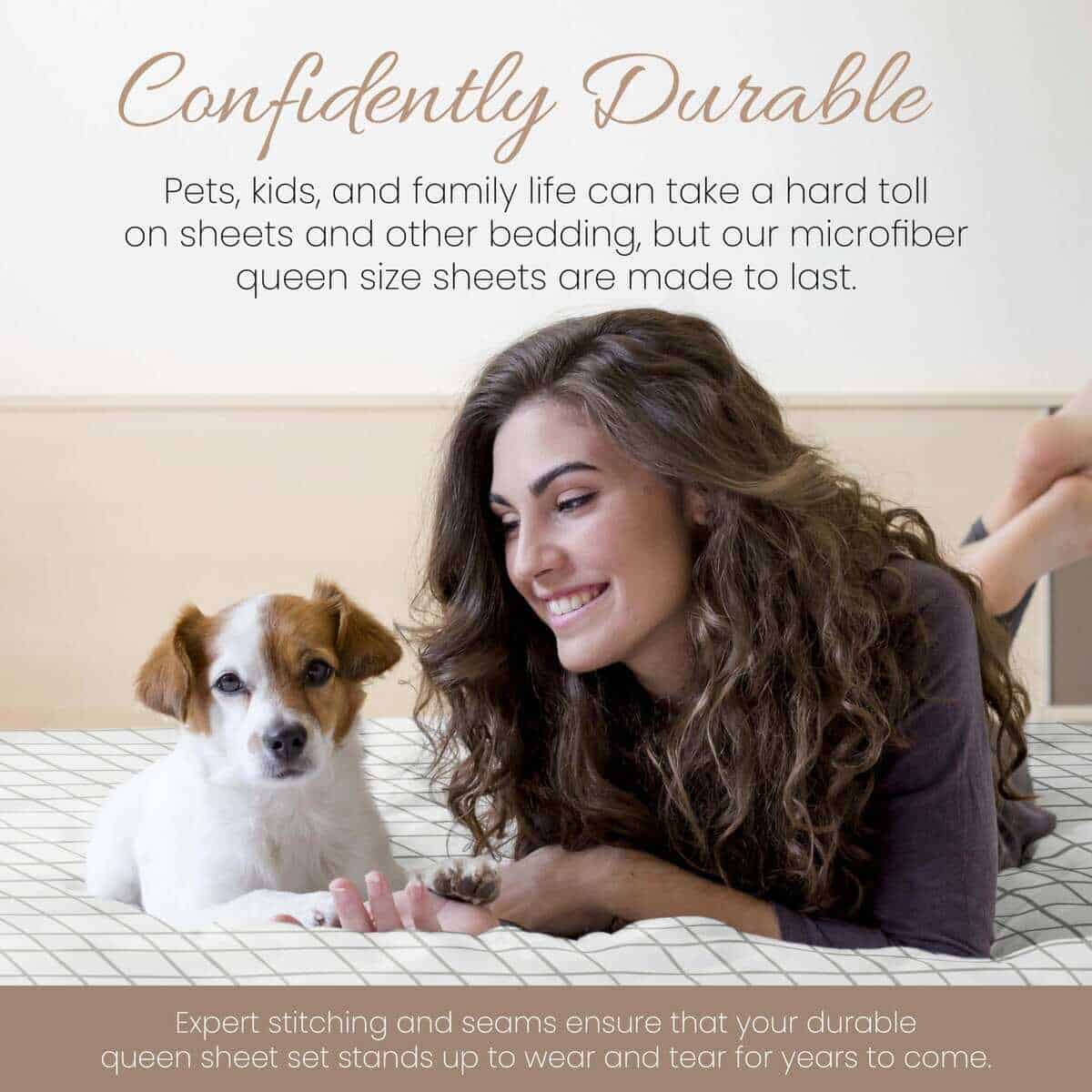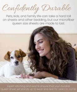 4. DURADERO CON CONFIANZA: Las mascotas, los niños y la vida familiar pueden afectar duramente a las sábanas y otras prendas de cama, pero nuestras sábanas de microfibra en tamaño queen están hechas para durar. Las costuras y bordes expertos aseguran que tu juego de sábanas queen duradero aguante el desgaste durante años.