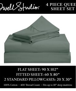 Presentamos el epítome del lujo y confort para tu santuario nocturno – el Juego de Sábanas Queen Dwell Studios Luxe Comfort 400TC Algodón Sábana Satén 4 Pc Set. Eleva tu experiencia de dormir con este conjunto de ropa de cama meticulosamente elaborado, diseñado para envolverte en opulencia cada noche.