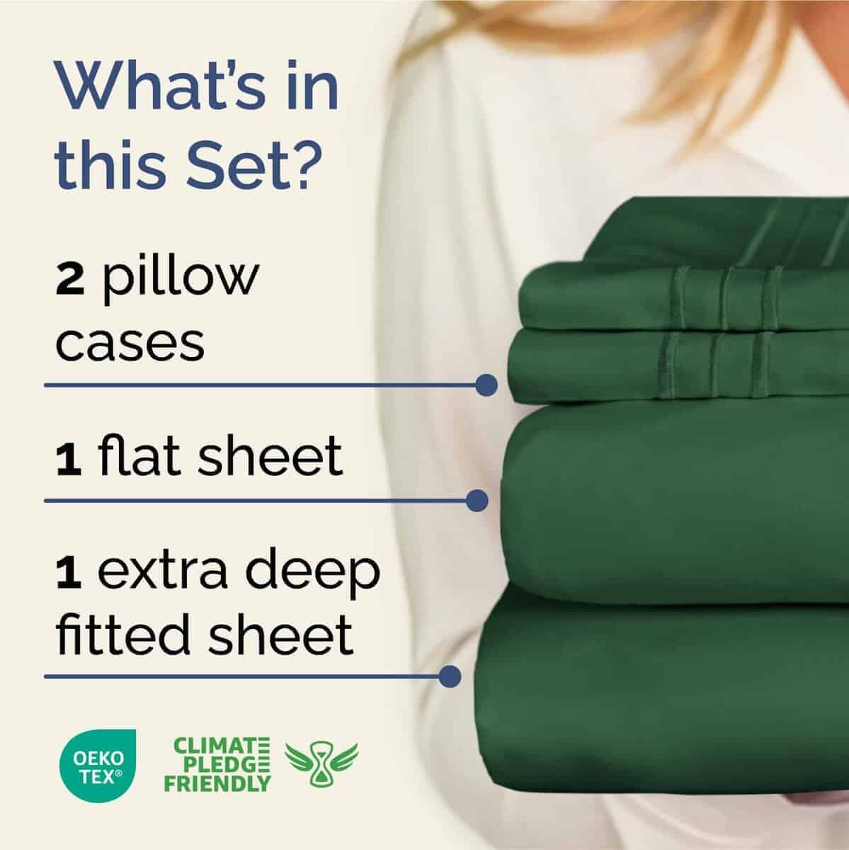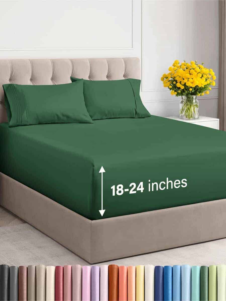 Juego de Sábanas Queen Extra Profundas – 4 Piezas -Verde Esm