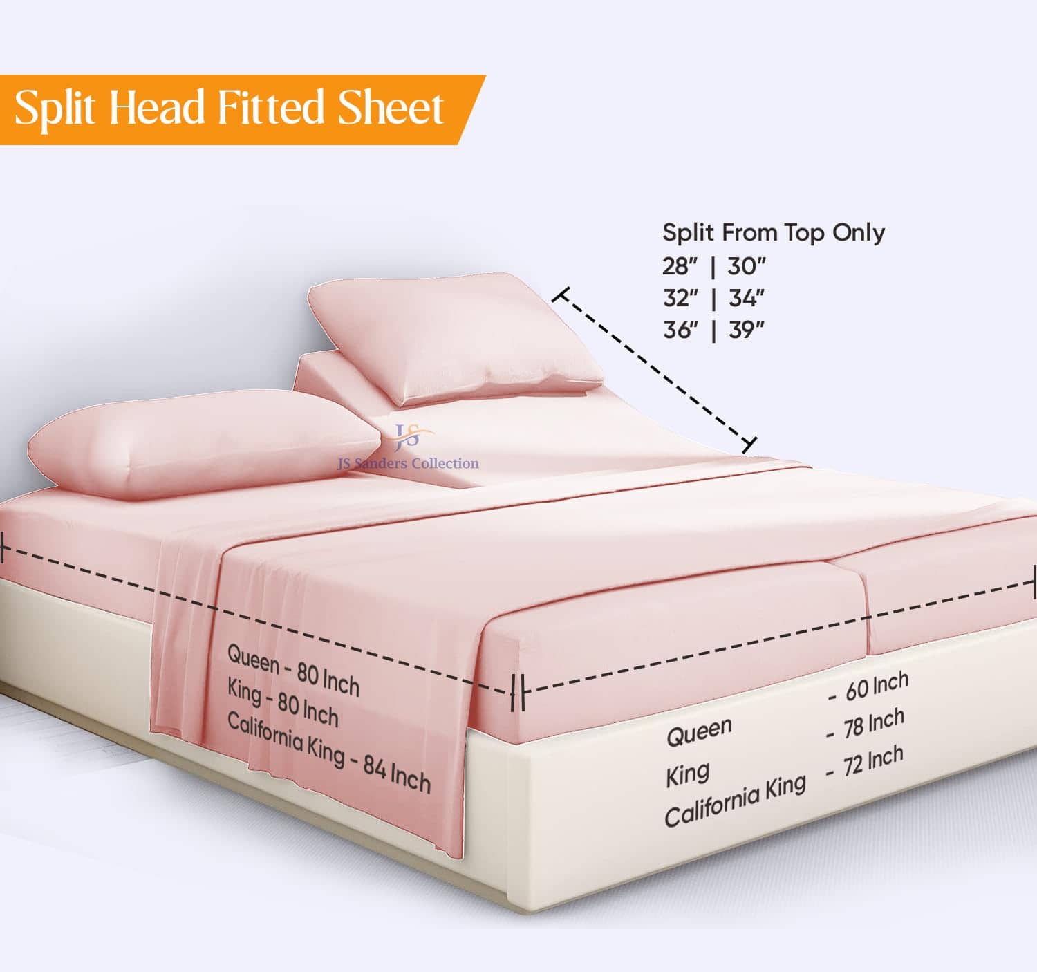 2. 1 Sábana Ajustable Split Head Flex Queen: 60″ x 80″, dividida 34″ desde la parte superior, 1 sábana plana Queen: 90″ x 102″, 2 fundas de almohada Queen: 20″ x 30″.