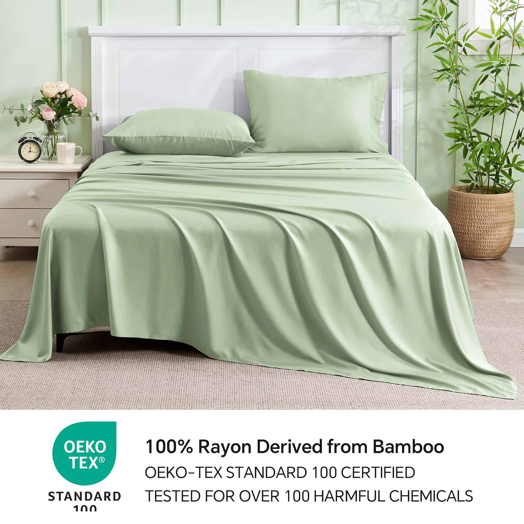 Juego de sábanas Queen INFIIXSO Verde Salvia – 100% Rayón