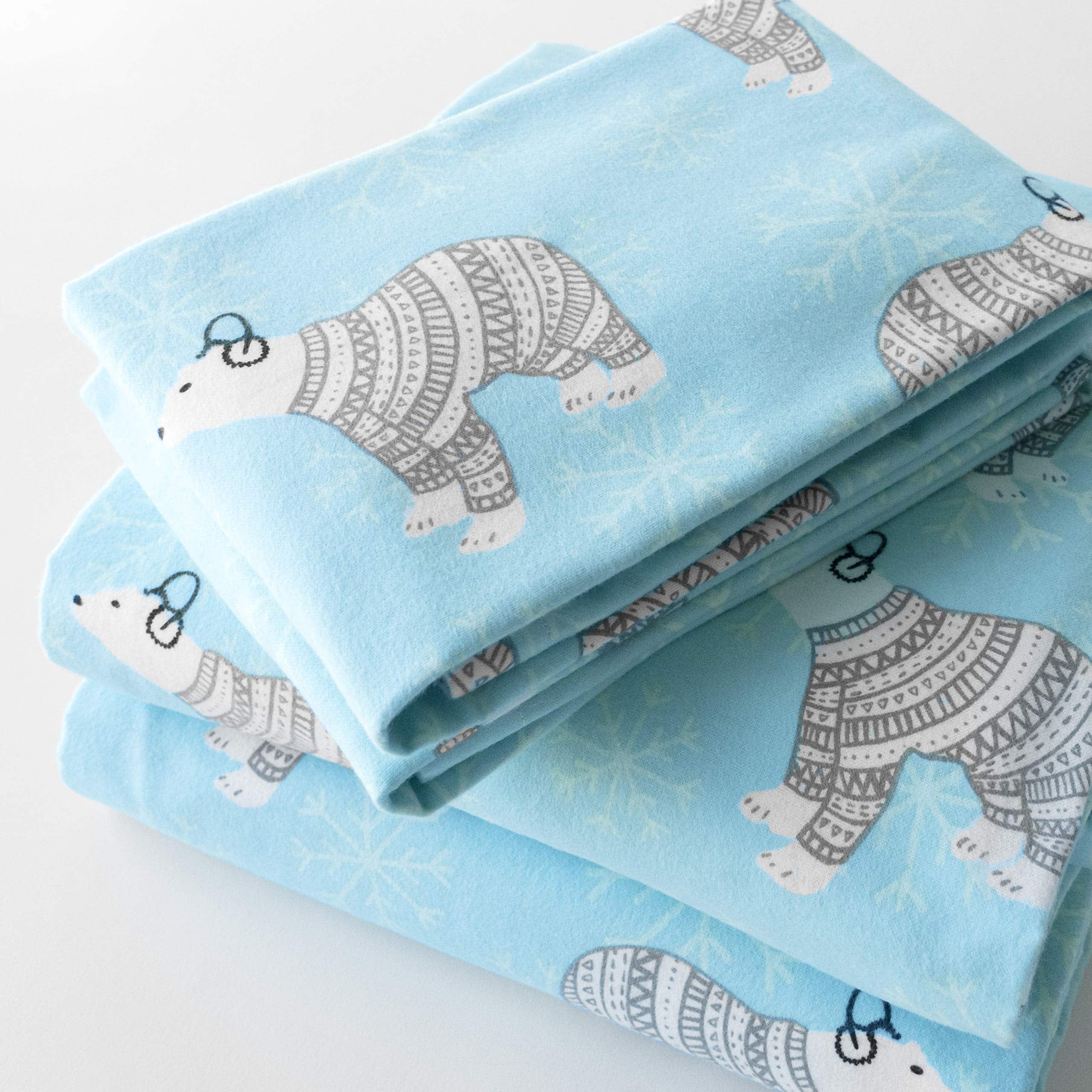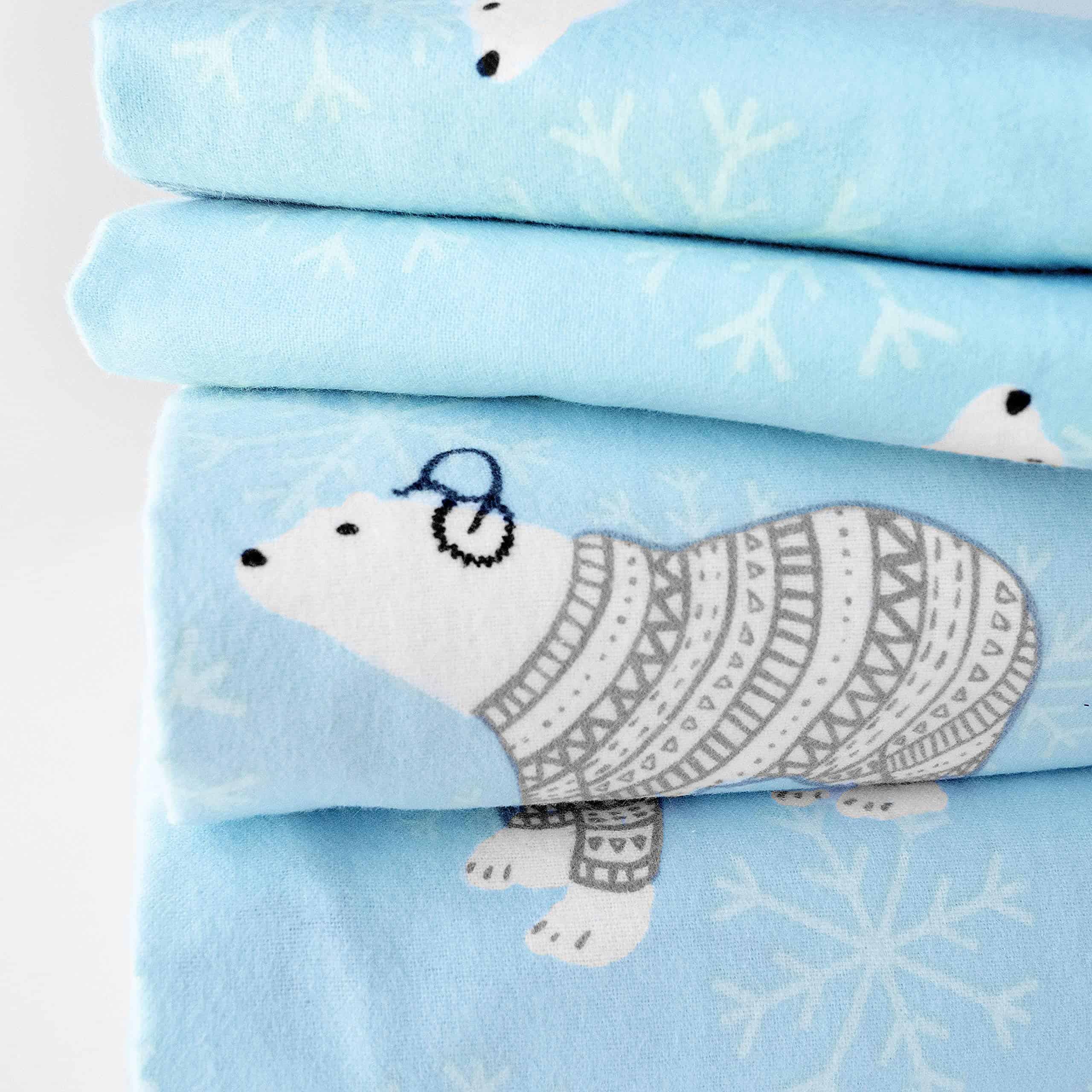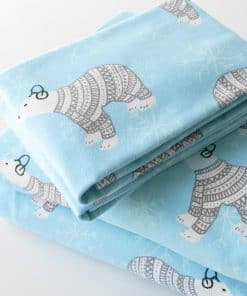 1. Lujo de franela de doble cepillado – Disfrute de la suavidad de nuestras sábanas queen, confeccionadas en franela de algodón 100% doble cepillado para una suavidad suprema. Nuestros juegos de sábanas queen elevan su experiencia de sueño. 2. Juego completo y ajuste perfecto – Este juego de ropa de cama queen de 4 piezas incluye una sábana plana de 90″x102″, una sábana bajera ajustada de 60″x80″ (16″ de profundidad para esquinas) y 2 fundas de almohada de 20″x30″ para un sueño cómodo y ajustado. 3. Transpirabilidad – Nuestras sábanas de franela de algodón premium ofrecen transpirabilidad a pesar de su calidez, permitiendo un amplio flujo de aire para un confort equilibrado durante toda la noche: un lujo para la decoración de su dormitorio. 4. Ajuste en las esquinas profundas – Equipada con elástico resistente, nuestra sábana bajera ajustada asegura un ajuste ceñido en colchones de hasta 16 pulgadas de profundidad, demostrando ser el juego de ropa de cama queen perfecto para sus noches de descanso. 5. Diseño para todo el año y estacional – Revitalice su espacio con nuestro juego de sábanas queen temático de osos polares. El encantador diseño de osos con orejeras agrega una cálida alegría navideña a cualquier dormitorio o habitación de invitados.