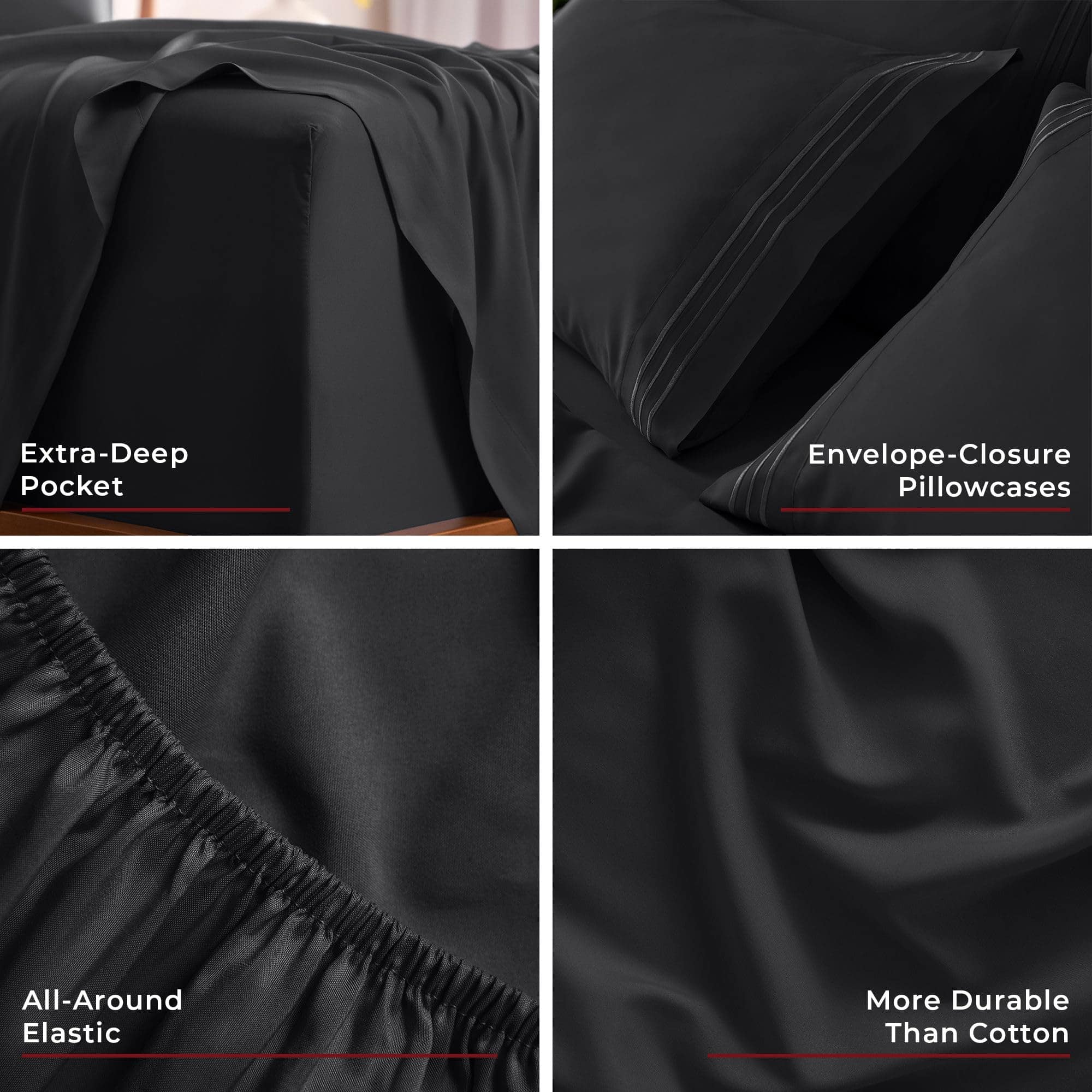 Juego de sábanas Queen Mellanni – Colección -Negro