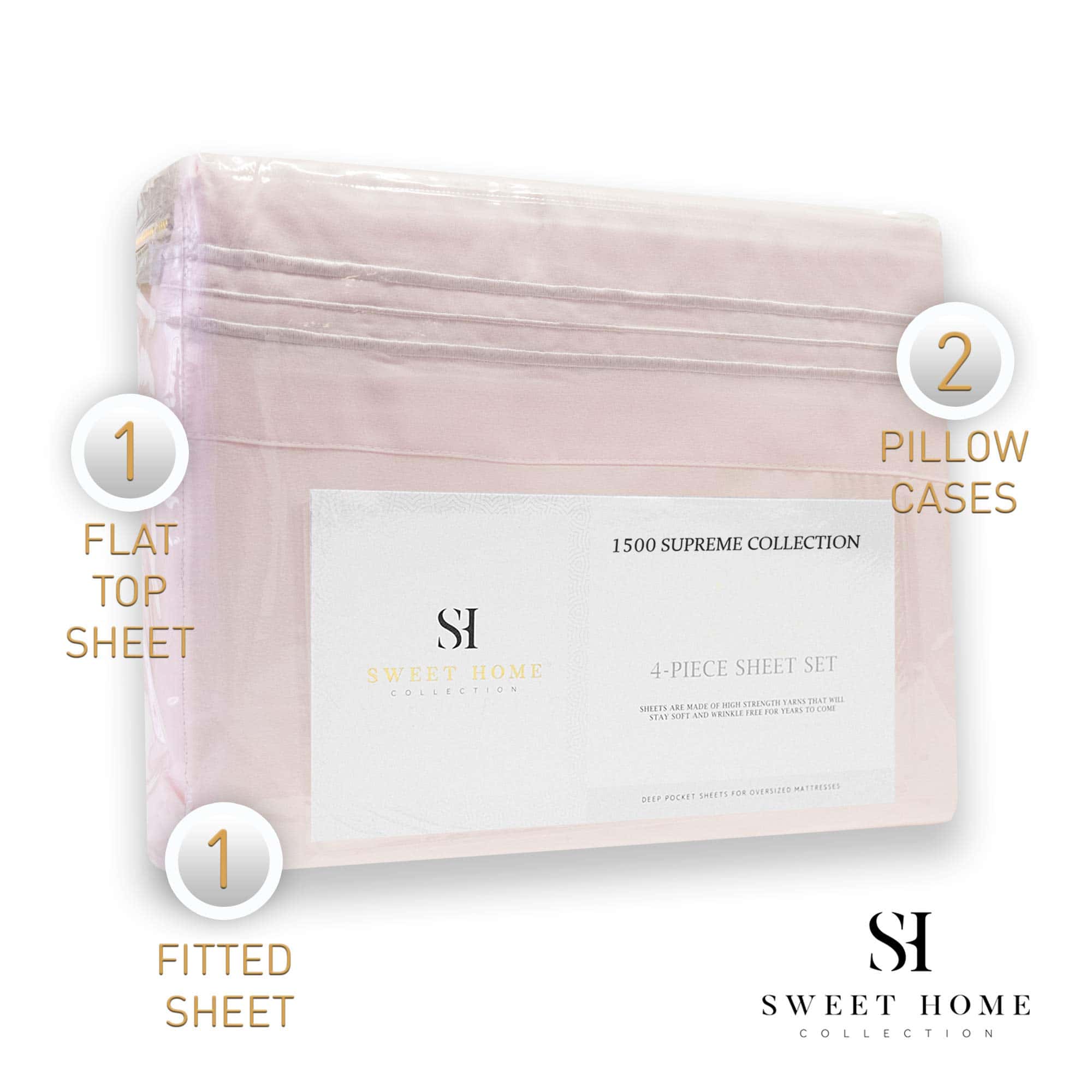 Juego de Sábanas Queen Pale Pink 1500 Supreme Collection –
