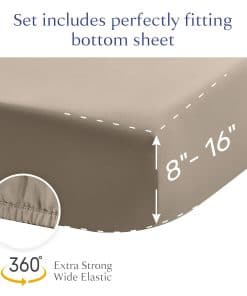 1. Experiencia de sueño lujoso y fresco: Transforma tu sueño con nuestro juego de sábanas de 500 hilos de algodón 100% satén. Mejora la apariencia de tu cama con nuestras sábanas beige, proporcionando la máxima suavidad, confort y transpirabilidad para una mañana refrescante. 2. Comodidad y Salud óptimas: Experimenta unas sábanas livianas y que absorben la humedad, promoviendo un sueño profundo y reparador. Ideales para personas que duermen calientes, nuestras sábanas de algodón de fibra extra larga son suaves, mantecosas y rejuvenecedoras. Disfruta de estas lujosas sábanas tamaño Queen. 3. Nuestro Compromiso: La suavidad y calidad de nuestras sábanas de algodón han sido verificadas y comprobadas. Lavables a máquina, fáciles de mantener y certificadas Oeko Tex para tu seguridad. 4. Sábana Ajustable Esencial: ¿Cansado de sábanas que no ajustan bien? Nuestra sábana ajustable se adapta a colchones de hasta 16 pulgadas de profundidad con elástico duradero e indicadores fáciles para hacer la cama. Esta sábana ajustable tamaño Queen no se mancha, descolora ni produce pelusas y conserva el color lavado tras lavado. 5. Elección de Inversión Inteligente: Nuestras sábanas de lujo de 500 hilos certificadas de manera independiente garantizan una inversión inteligente en ropa de cama. Duraderas, confortables y hechas para durar años, puedes confiar en nuestras elegantes sábanas de algodón.