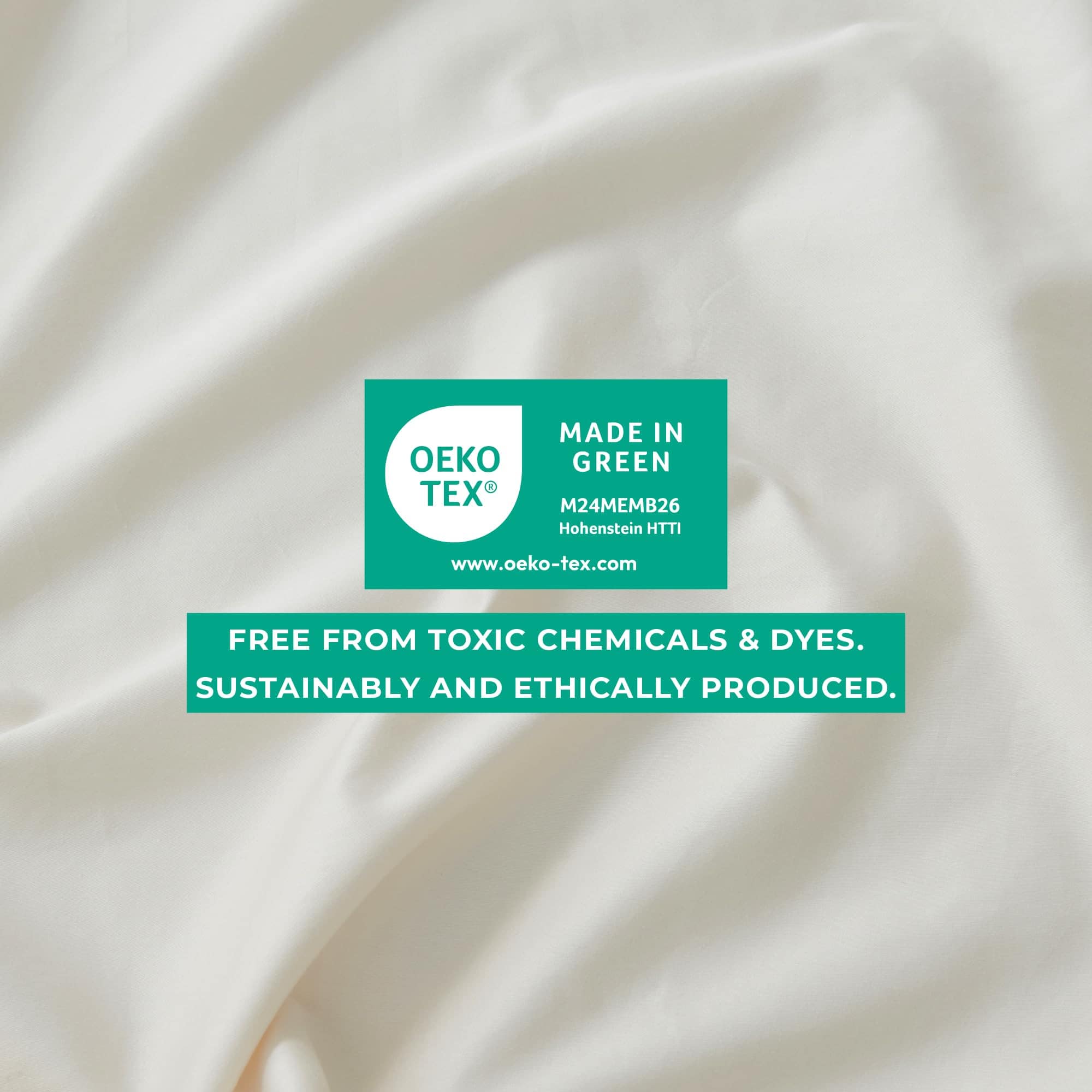Elaboradas con cuidado, con algodón 100% de alta calidad y una técnica de tejido sateen, te quedan sábanas de algodón sateen naturalmente lustrosas y transpirables. Con algodón duradero y un tejido de calidad, obtienes sábanas que promueven la regulación natural de la temperatura, se acabaron las noches de dar vueltas por el calor. La sábana ajustable con un bolsillo de 15″ de profundidad y una sábana extra fuerte totalmente elastizada hace que hacer la cama sea fácil. Debido al algodón y al tejido sateen, estas sábanas se sienten suaves y ofrecen un brillo sutil. Esta colección de sábanas se compone de una paleta de colores tranquilizadores y versátiles con tonos tierra; estas sábanas crearán una estética serena en tu dormitorio. Hechas de forma ética en India y certificadas Oeko-Tex MADE IN GREEN, puedes dormir tranquilo sabiendo que tus sábanas son buenas para ti y para el planeta.