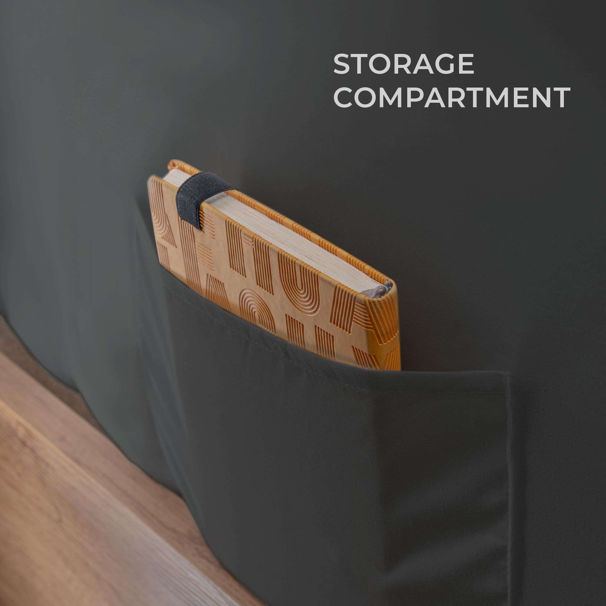 4. PRESENTANDO LA INNOVADORA SÁBANA CON COMPARTIMENTOS DE ALMACENAMIENTO DE DOBLE CARA. Introducimos nuestra revolucionaria sábana ajustada con bolsillos de almacenamiento de doble cara. Con dos divisiones en cada lado, estos convenientes bolsillos están diseñados para guardar tus gafas, controles remotos, teléfonos celulares, libros y otros objetos pequeños, manteniéndolos fácilmente accesibles. Di adiós a los problemas y disfruta de un acceso rápido a tus elementos esenciales con nuestra innovadora sábana ajustada.