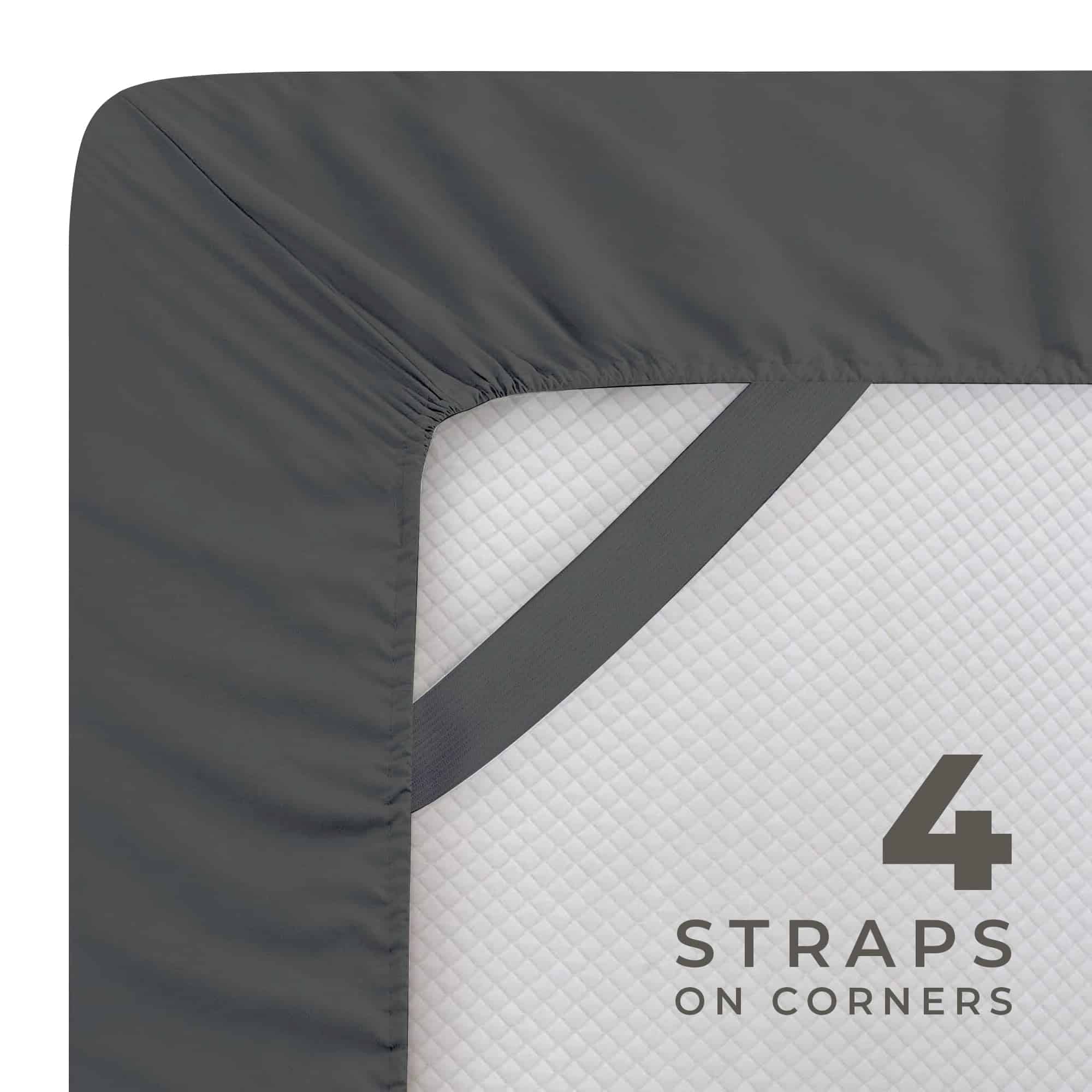 3. BANDA ELÁSTICA EN TODO EL CONTORNO/ CORREAS ADICIONALES EN LAS CUATRO ESQUINAS: La sábana ajustada presenta una banda elástica en todo el contorno, asegurando un ajuste ceñido al colchón y proporcionando un aspecto pulido a tu cama. Además, hemos añadido correas en las cuatro esquinas de las sábanas para sujetarlas y minimizar cualquier movimiento no deseado.