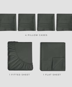 1. ¡PRESENTAMOS NUESTRO EXCLUSIVO JUEGO DE SÁBANAS DE 6 PIEZAS, diseñado para elevar tu experiencia de sueño! Este lujoso set incluye cuatro fundas de almohada, una sábana plana y una sábana ajustada. La sábana plana tiene dimensiones generosas de 102 pulgadas por 90 pulgadas, asegurando una amplia cobertura para tu cama. Nuestra sábana ajustada mide 80 pulgadas por 60 pulgadas, ajustándose perfectamente a tu colchón con precisión. Para completar el conjunto, proporcionamos 4 fundas de almohada exquisitamente bordadas de 20 pulgadas por 30 pulgadas.