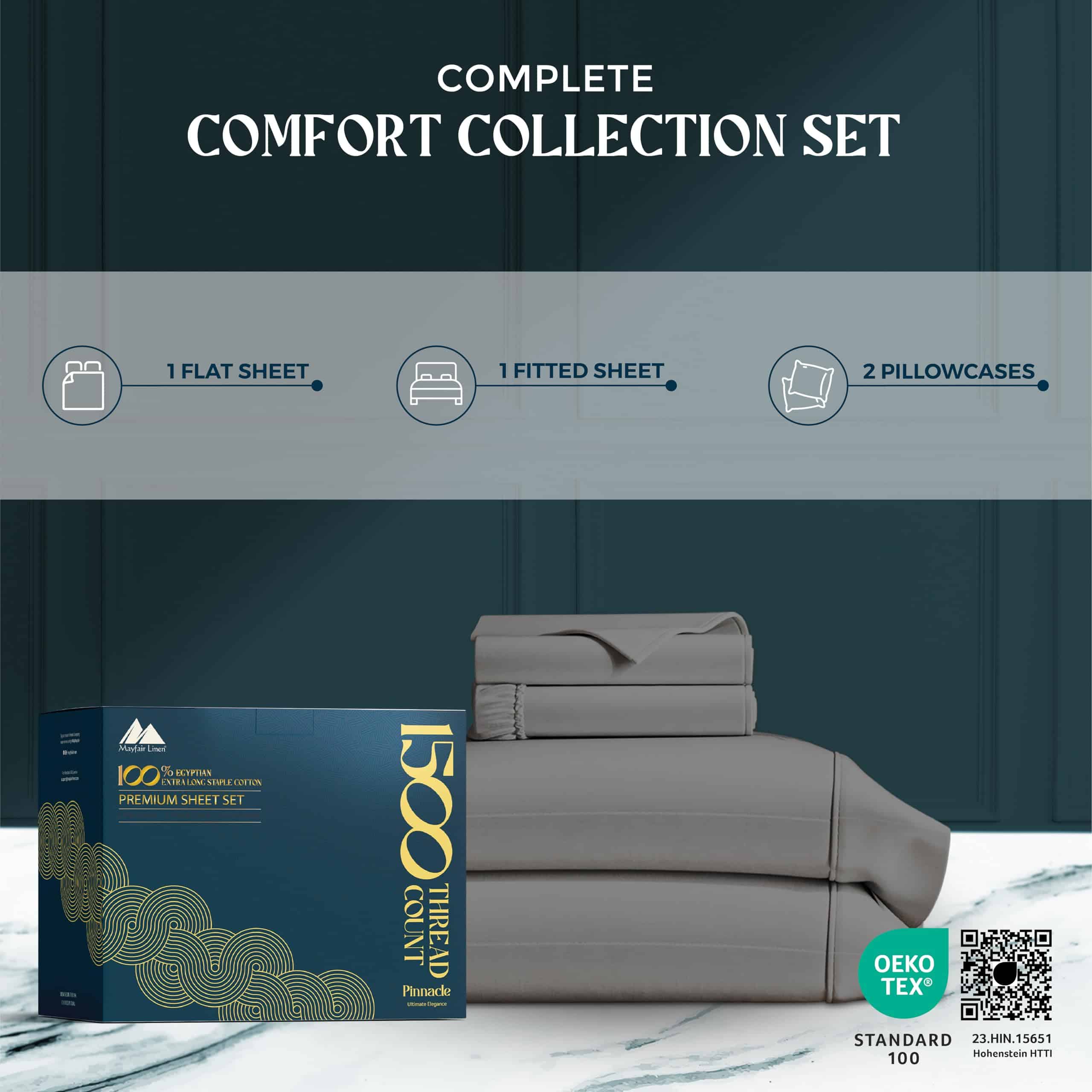 Made from the Rarest Cotton in the World: Meet 100% Egyptian cotton the finest Egyptian-grown cotton that accounts for less than 1% of the cotton worldwide. We weave this extraordinary fabric into the 1500 thread count for the softest and silkiest sheets. Each Egyptian cotton sheet is trademarked by the Egyptian association to ensure genuine quality. The Softest & Comfiest Sheets to Ever Exist: Egyptian cotton fibers are typically 35% longer than regular cotton to produce softer and smoother queen bed sheets. You can expect these luxury Egyptian cotton sheets queen size to be thick and heavy, like the Egyptian cotton sheets in the five-star hotel. Perfect for all-season use, these cozy sateen bedsheets are cool and breathable and don�t make you feel hot in summer, like other heavy sheets do. Does Not Shrink, Fade, Or Pill On Wash (Truly!): Our Egyptian cotton sheets queen size is naturally super strong and durable and last for many years to come. Besides, we mercerize our premium 1500 thread count queen sheets Egyptian cotton cotton to improve their tensile strength, dye uptake for vibrant color, and resistance to lint, pilling, shrinkage, and fading on the wash. Remember, cotton bedsheet takes a few washes to become soft and does wrinkle after the wash. Includes a Complete 4-Piece Sheet Set: Mayfair Linen�s 1500 thread count Egyptian cotton queen sheets sets include: 1 Flat Sheet (90″ x 102″), 1 Fitted Sheet (60″ x 80″ + 16″), and 2 Standard/Queen Pillowcases (21″ x 32″). The fitted sheet guarantees a taut fit on the mattress with extra deep pocket to accommodate all kinds of adjustable mattresses, and the elastic to secure the sheet to the mattress. Pillow case has envelope closures to tuck in the pillows inside. Got Extra Pillows We Have Matching Pillow Cases Sold Separately: Choose from a range of solid, plain colors to match your existing sheet set. These queen size pillow cases 2 offer the perfect blend of comfort and elegance, making them an ideal addition to any bedroom decor. Gift the set to your loved ones on Christmas, Valentine�s Day, Father�s Day, Mother�s Day, etc. Check out Mayfair Linen Home Decor Collection for more details