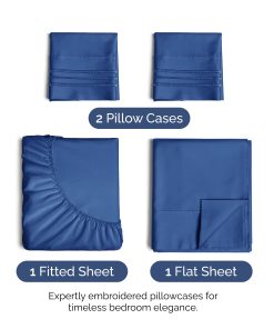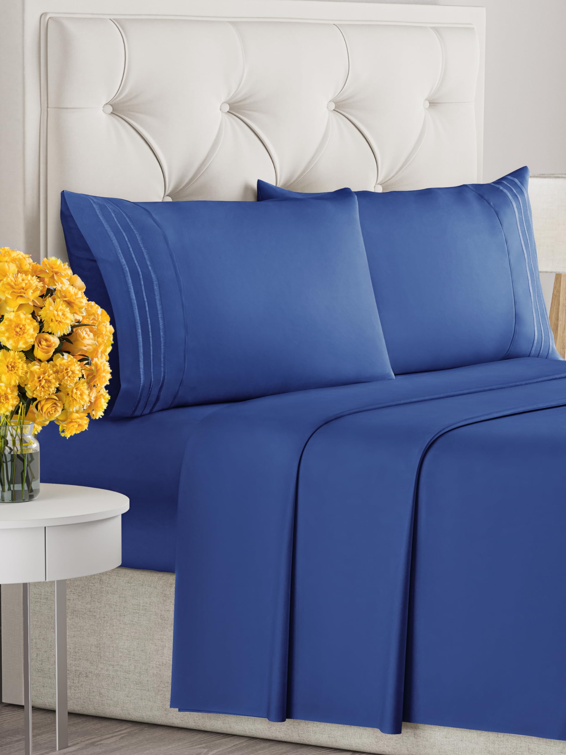 Juego de sábanas Queen Size de 4 piezas – -Azul Cobalto