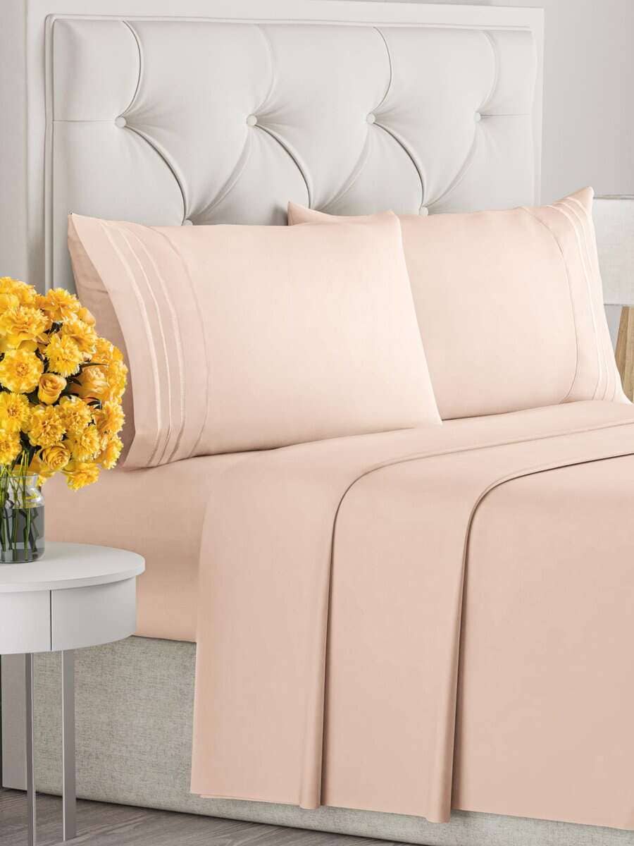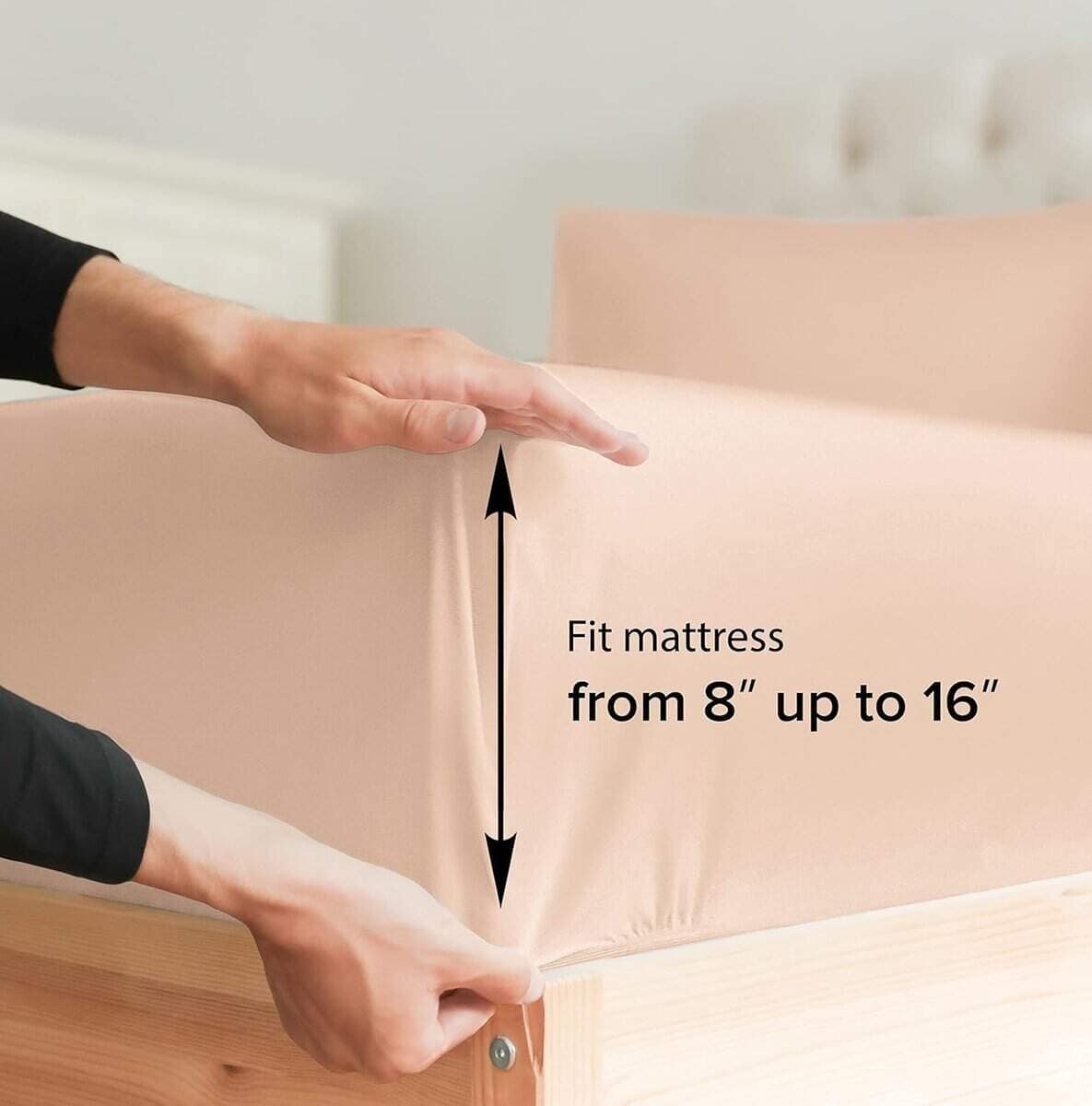 Juego de sábanas Queen Size de 4 piezas en color crema rosa. Incluye 2 fundas de almohada, una sábana plana y una sábana ajustable. La sábana plana mide 102 x 90 pulgadas, la sábana ajustable mide 80 x 60 pulgadas y las fundas de almohada miden 20 x 30 pulgadas. Los bolsillos profundos y el fácil ajuste permiten que se adapten a colchones de hasta 16 pulgadas de profundidad, lo que garantiza un ajuste perfecto. Estas sábanas son extremadamente suaves, transpirables y frescas, ofreciendo una sensación de lujo similar a la seda. Están hechas de microfibra cepillada de la más alta calidad, lo que garantiza una durabilidad excepcional y un tacto suave y lujoso. Son ideales para cualquier habitación de la casa, como dormitorio, habitación de invitados, autocaravana o casa de vacaciones. Además, son una excelente idea de regalo para cualquier persona. Disfruta de la comodidad y suavidad de estas sábanas CGK Unlimited a un precio asequible.